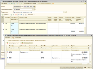 Первый документ «Движение незавершенного производства» выполнит проводки по переносу сумм НЗП со счетов производственного учета на счета учета незавершенного производства на дату ввода начальных остатков.