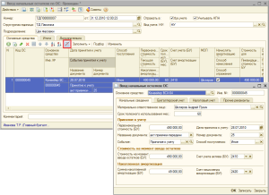 Редактирование данных по основному средству в отдельном диалоговом окне
