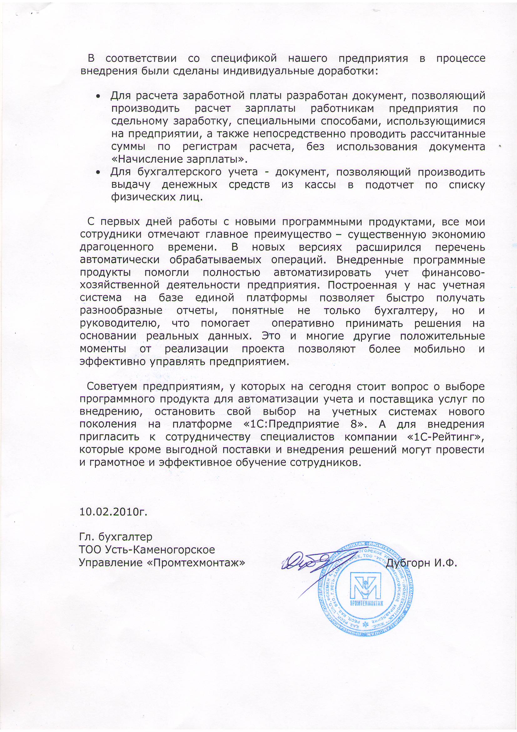 До 2009 года ТОО Усть-Каменогорское управление «Промтехмонтаж» вело учет с помощью ведущих в то время программных продуктов фирмы «1С» – «1С:Бухгалтерия 7.7» и «1С:Зарплата и Кадры 7.7». Данные ученые системы наиболее полно соответствовали задачам предприятия на тот момент, и обеспечило качественное ведение учета.