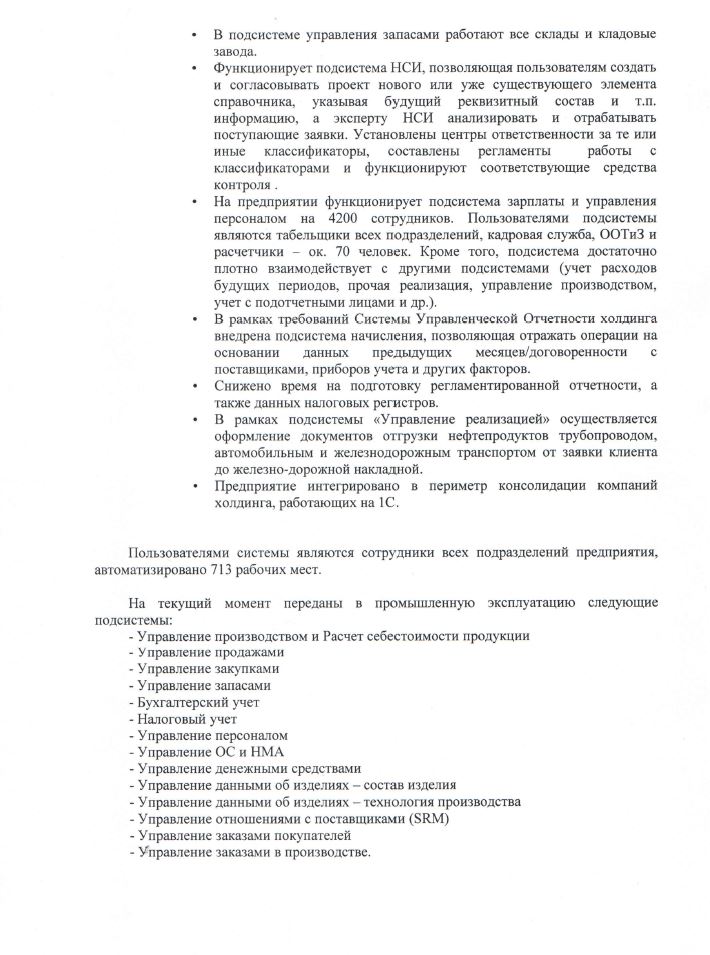 Пользователями системы являются сотрудники всех подразделений предприятия, автоматизировано 713 рабочих мест.