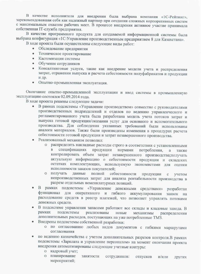 Окончание опытно-промышленной эксплуатации и ввод системы в промышленную эксплуатацию состоялся 02 сентября 2014 года.Пользователями системы являются сотрудники большинства подразделений предприятия, автоматизировано 80 рабочих мест.