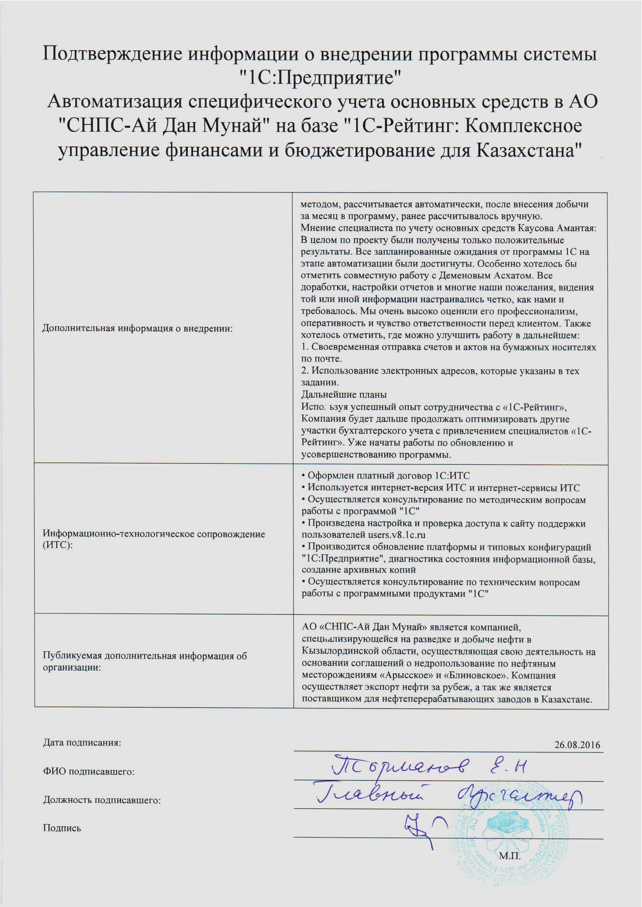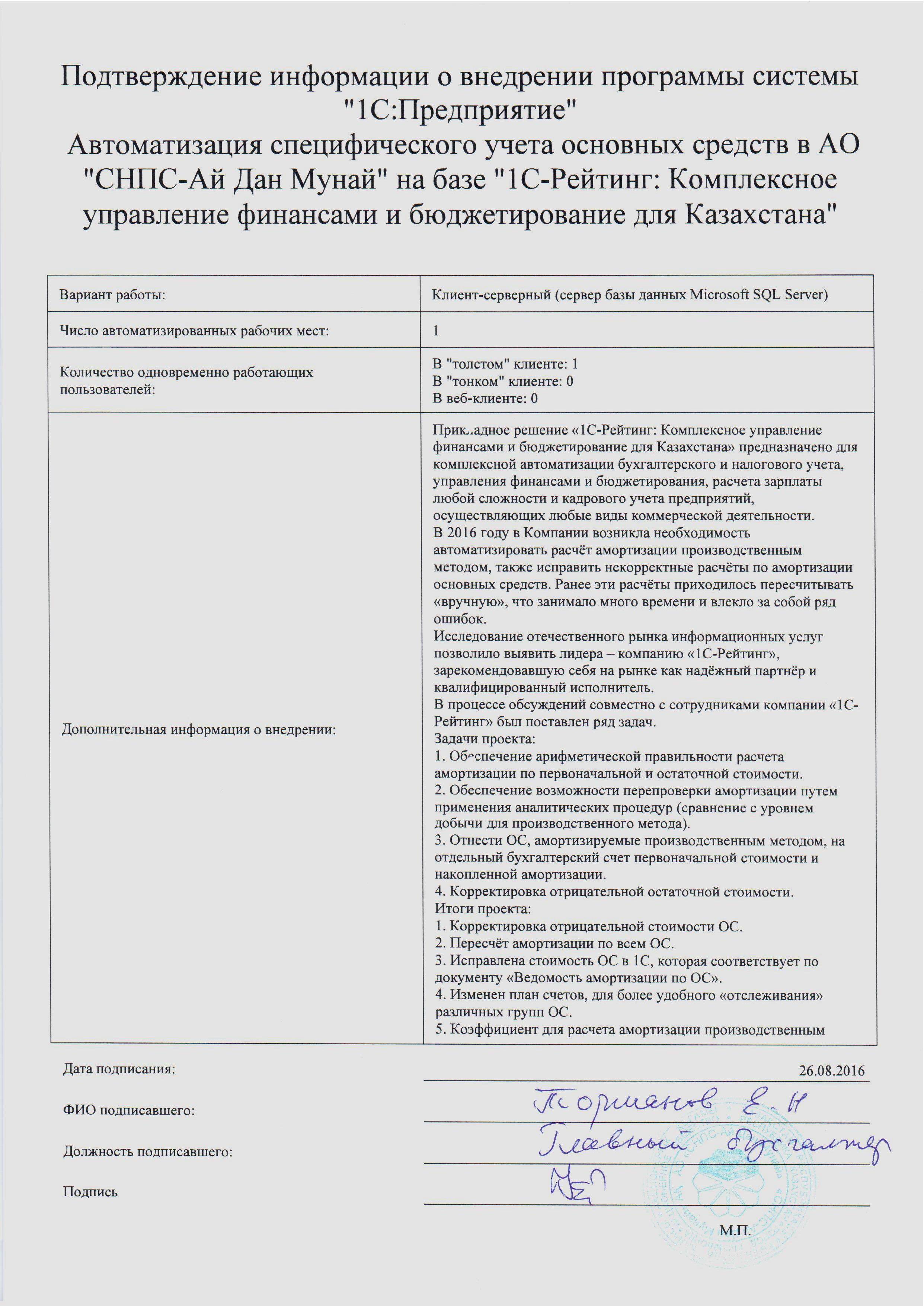 Специалистами компании «1С-Рейтинг» завершён проект автоматизации специфического учёта основных средств АО «СНПС-Ай Дан Мунай» на базе отраслевого решения «1С-Рейтинг: Комплексное управление финансами и бюджетирование для Казахстана».