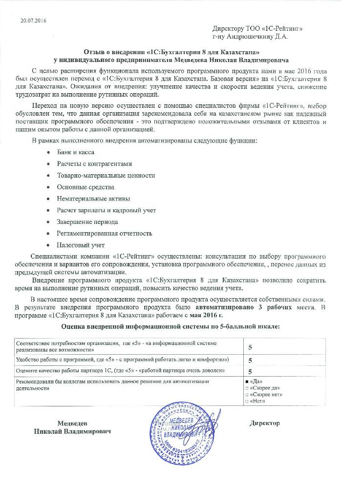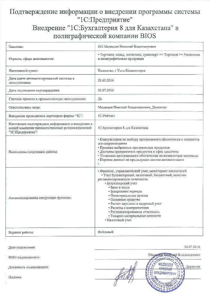 | Внедренное типовое решение: | 1С:Бухгалтерия 8 для Казахстана |