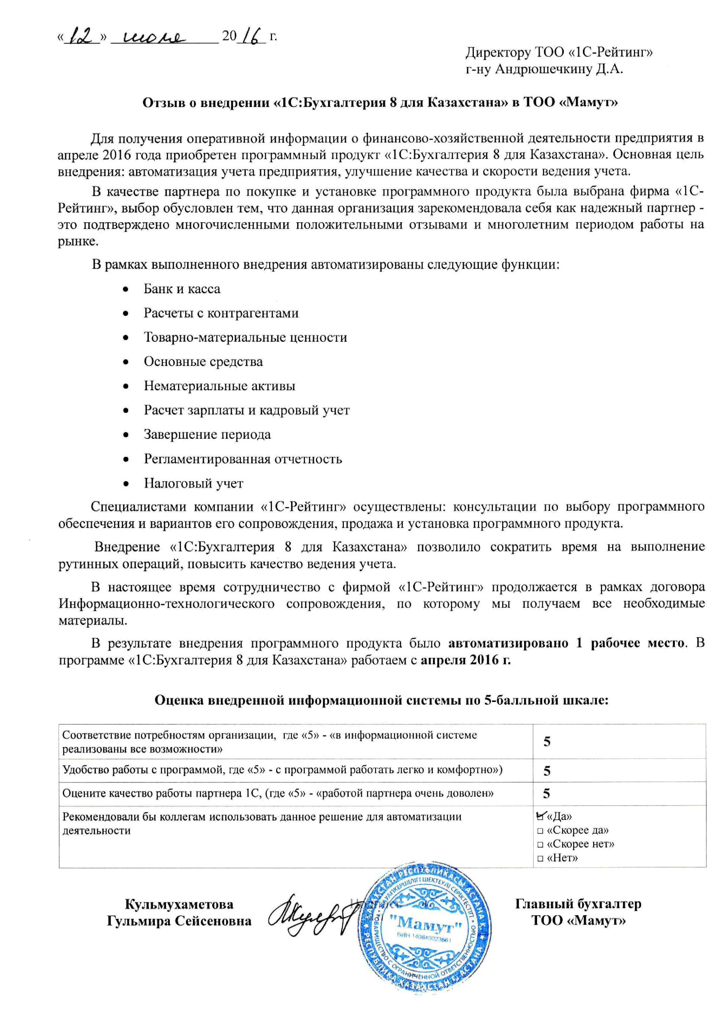 | Внедренное типовое решение: | 1С:Бухгалтерия 8 для Казахстана |