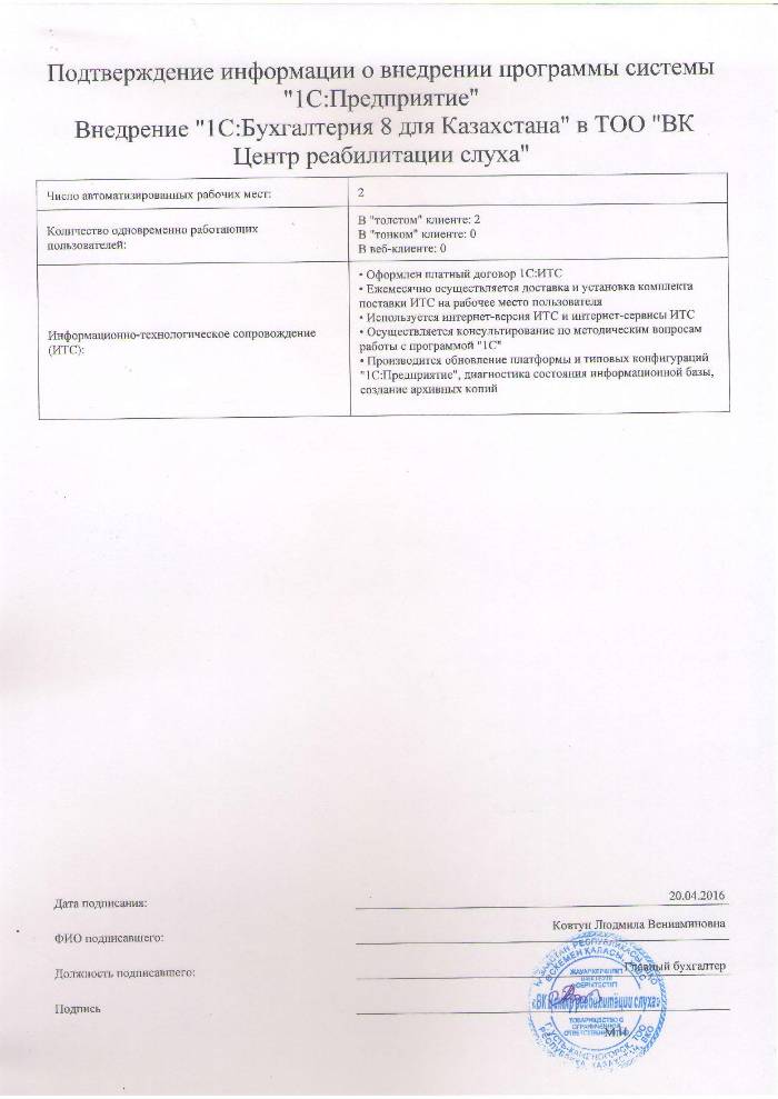 | Внедренное типовое решение: | 1С:Бухгалтерия 8 для Казахстана |