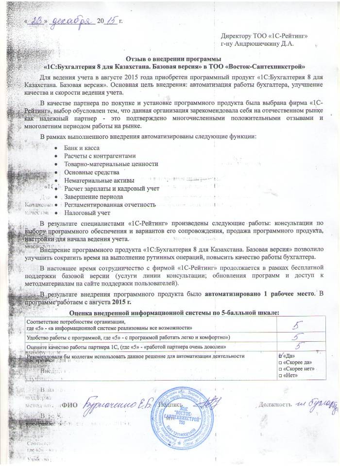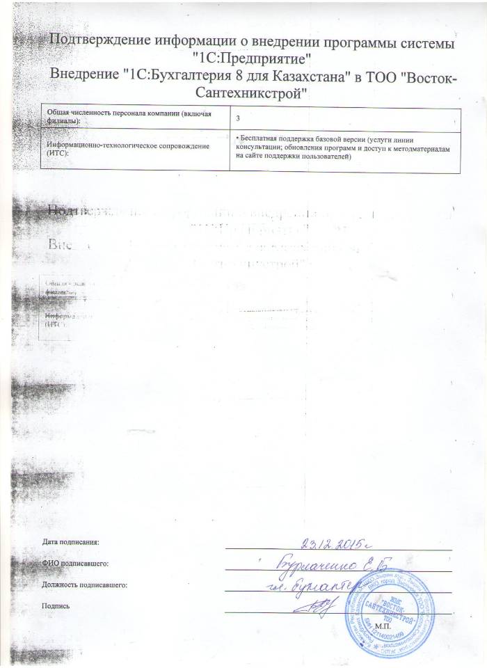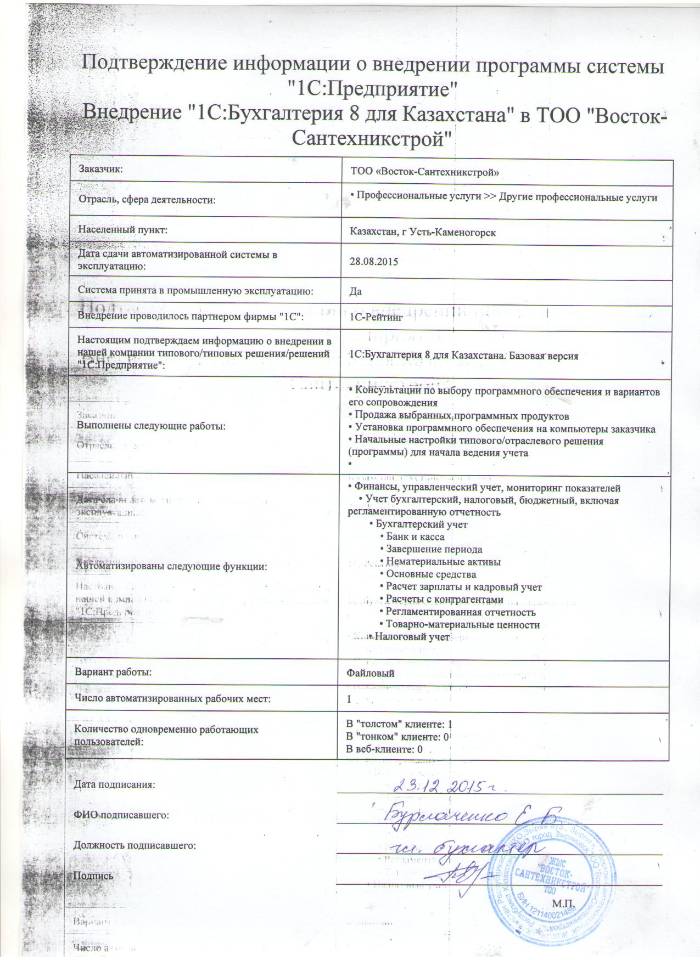 | Внедренное типовое решение: | 1С:Бухгалтерия 8 для Казахстана. Базовая версия |