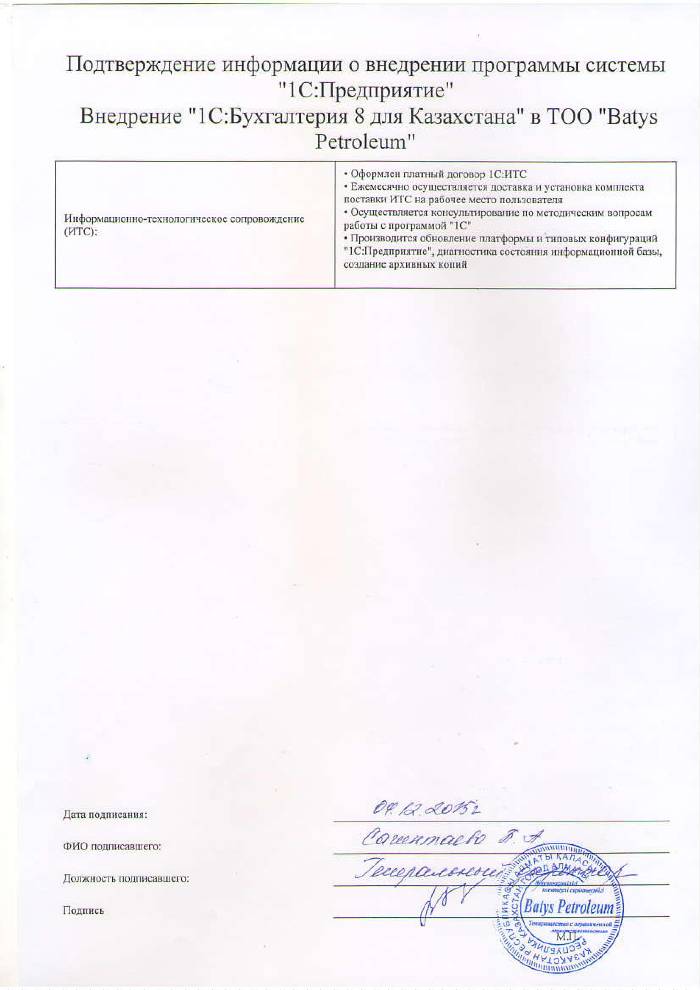 | Внедренное типовое решение: | 1С:Бухгалтерия 8 для Казахстана |