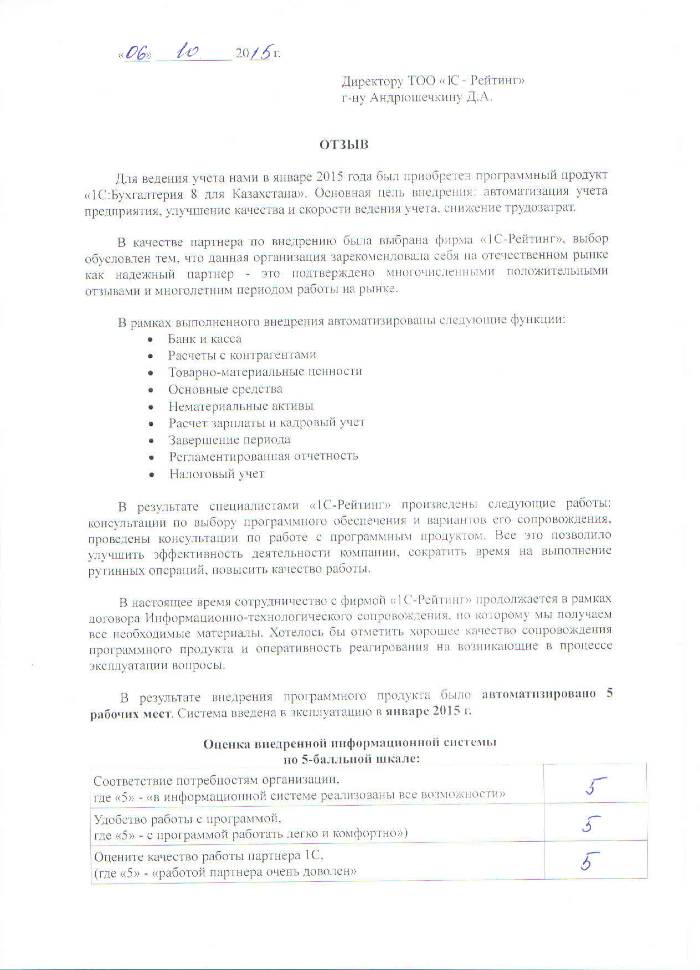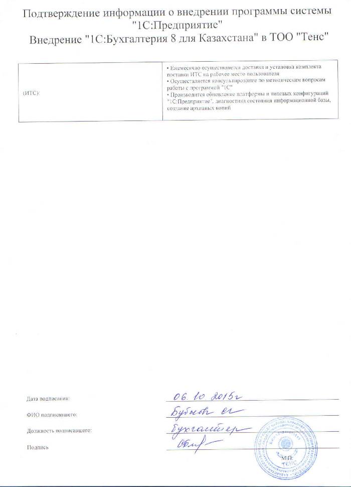 | Внедренное типовое решение: | 1С:Бухгалтерия 8 для Казахстана |