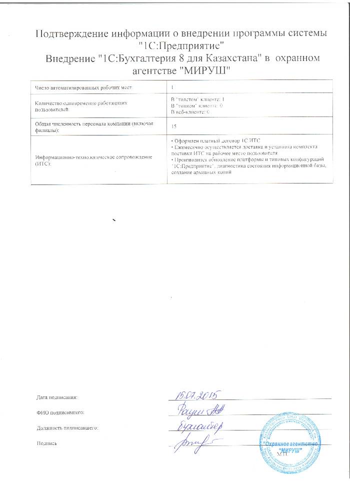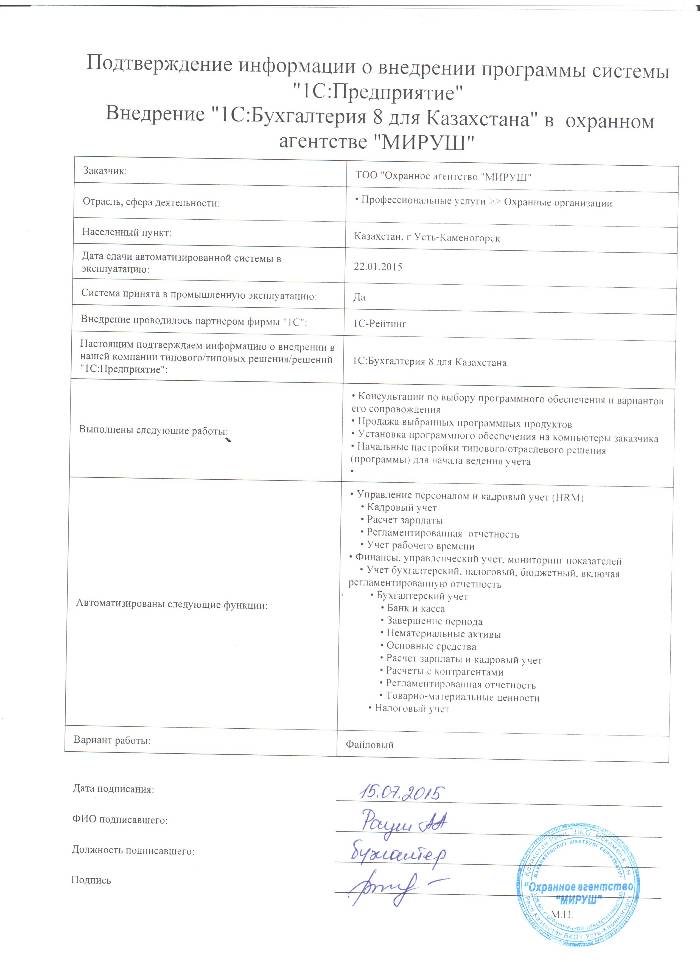 | Внедренное типовое решение: | 1С:Бухгалтерия 8 для Казахстана |
