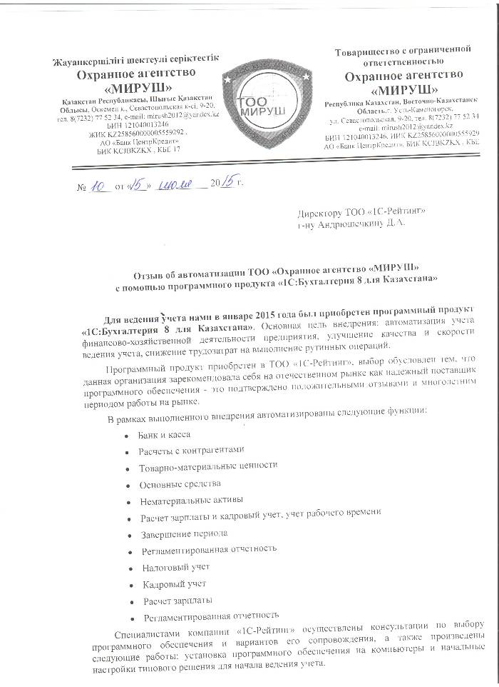 ТОО «Охранное агентство «МИРУШ»