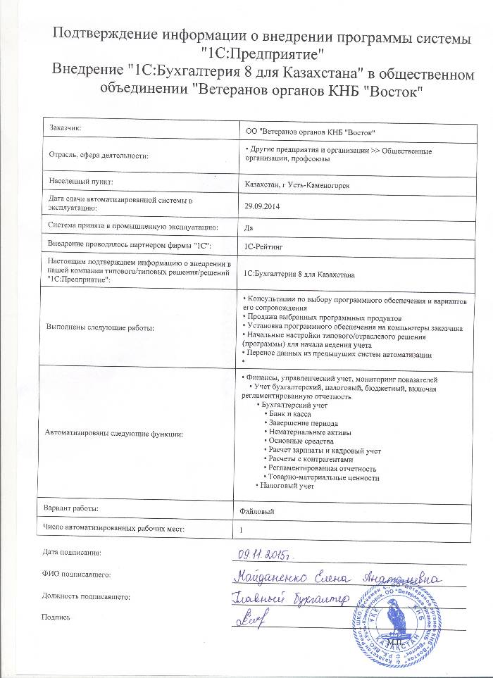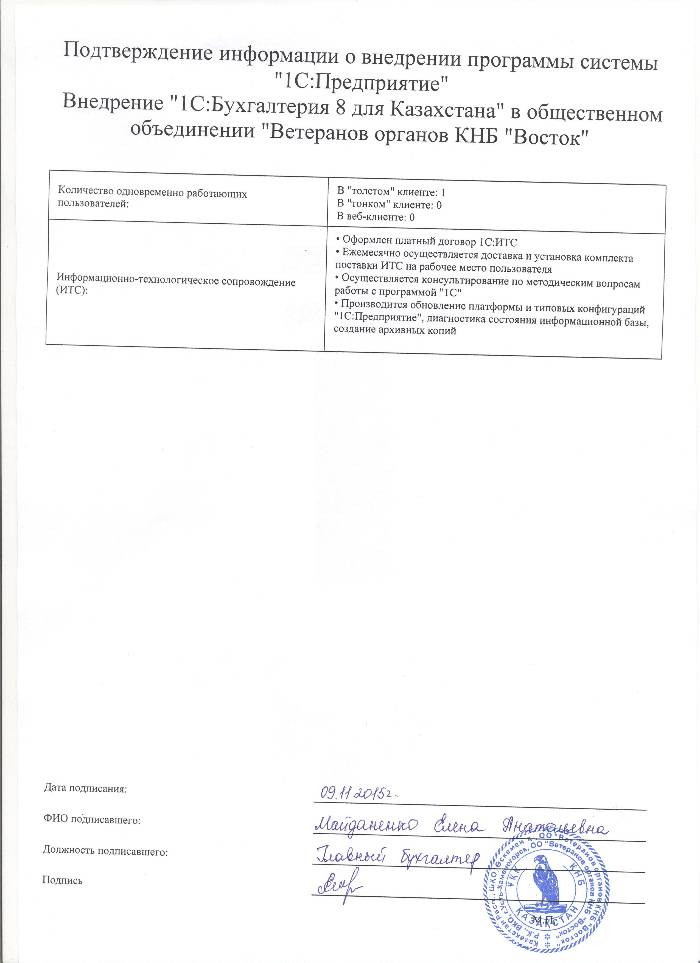 | Внедренное типовое решение: | 1С:Бухгалтерия 8 для Казахстана |