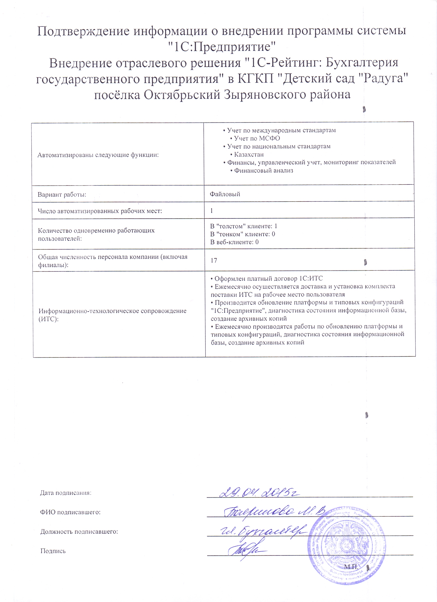 | Внедренное отраслевое решение: | 1С-Рейтинг: Бухгалтерия государственного предприятия |