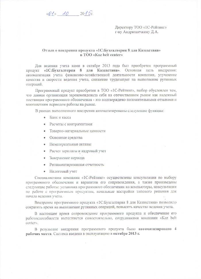 В настоящее время сопровождение программного продукта выполняется самостоятельно (сотрудниками компании Kaz belt center).