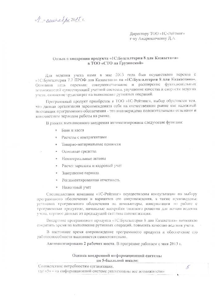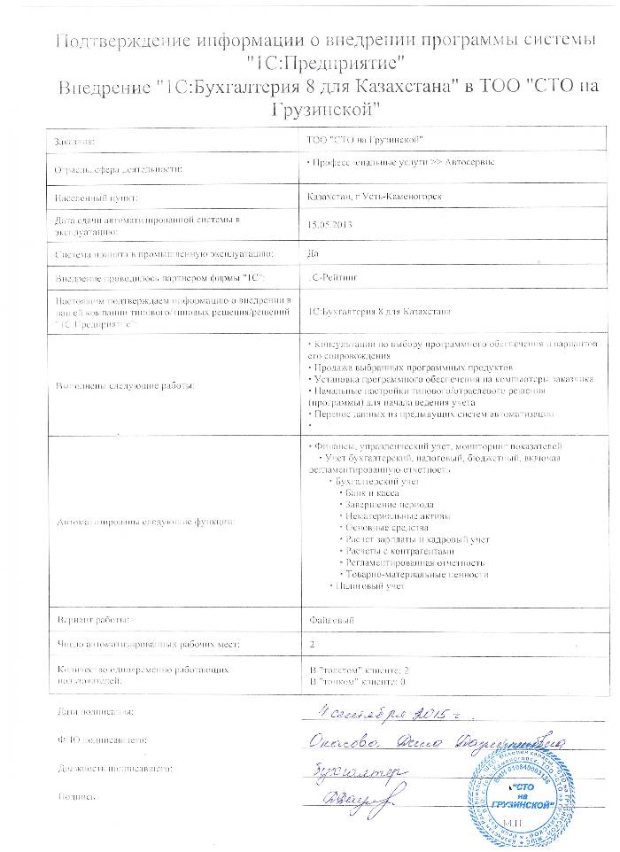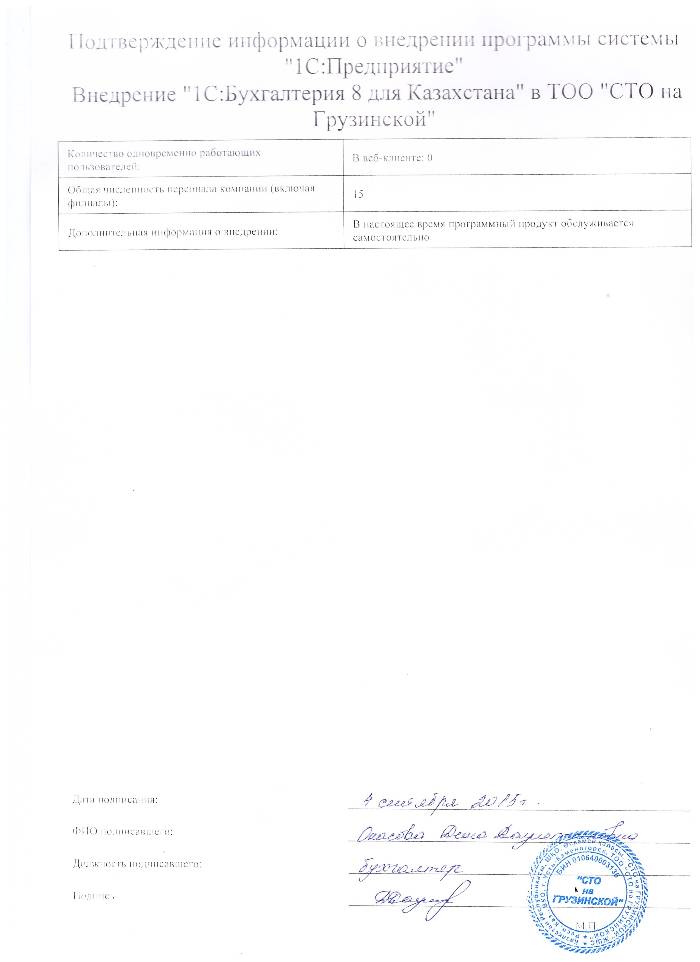 Внедрение «1С:Бухгалтерия 8 для Казахстана» в ТОО «СТО на Грузинской»