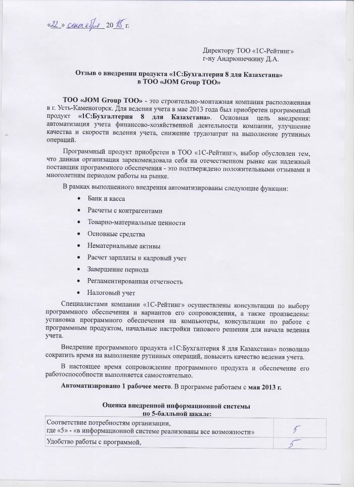 | Внедренное типовое решение: | 1С:Бухгалтерия 8 для Казахстана |