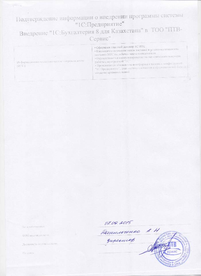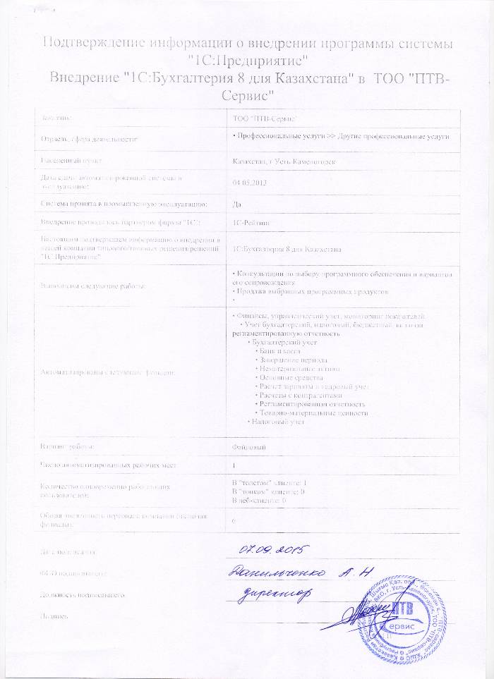 | Внедренное типовое решение: | 1С:Бухгалтерия 8 для Казахстана |
