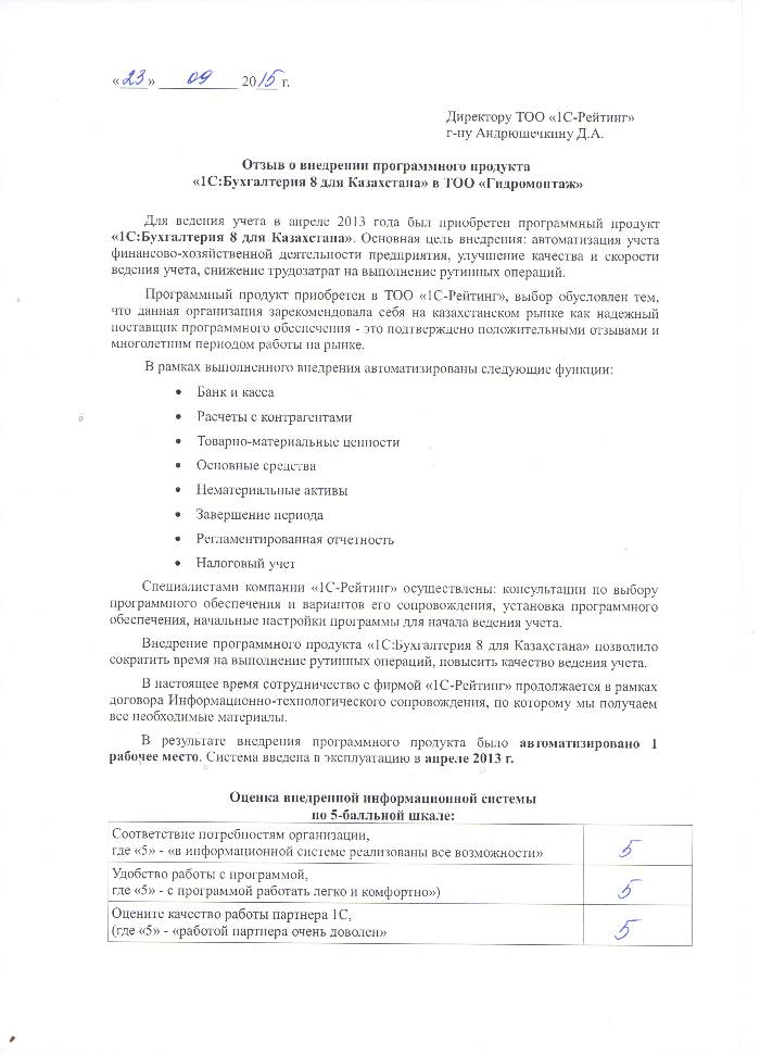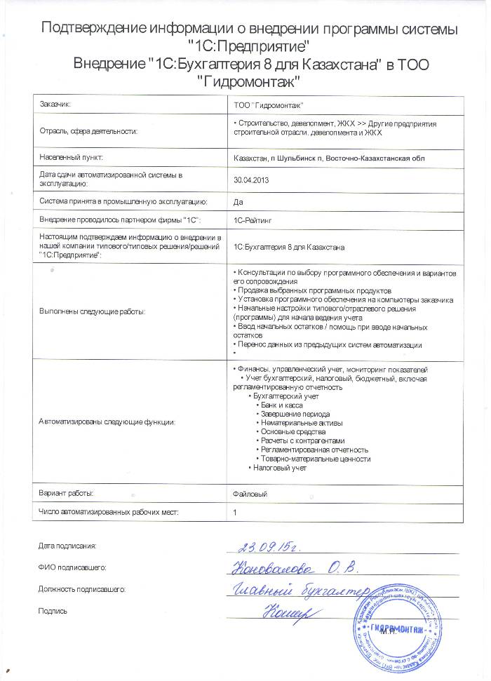 | Внедренное типовое решение: | 1С:Бухгалтерия 8 для Казахстана |