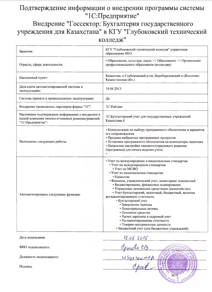 | Внедренное отраслевое решение: | Госсектор: Бухгалтерия государственного учреждения для Казахстана |