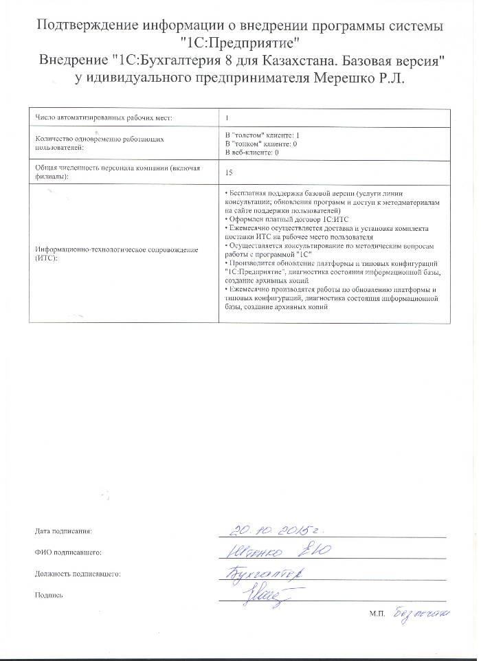 | Внедренное типовое решение: | 1С:Бухгалтерия 8 для Казахстана. Базовая версия |