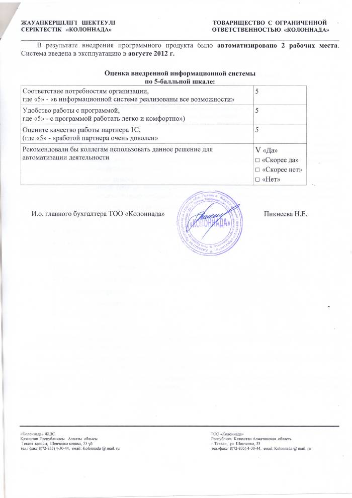 | Внедренное типовое решение: | 1С:Бухгалтерия 8 для Казахстана |