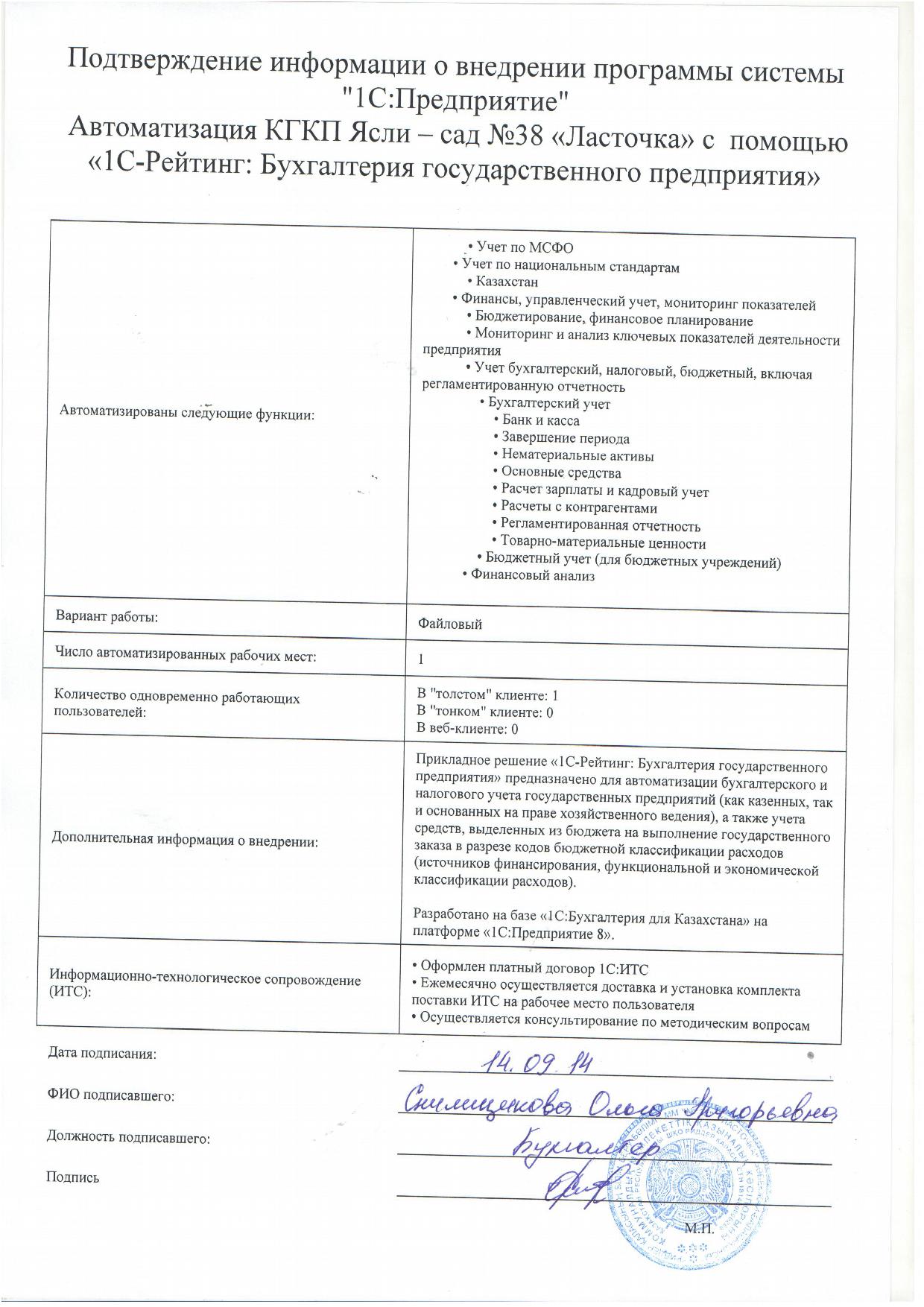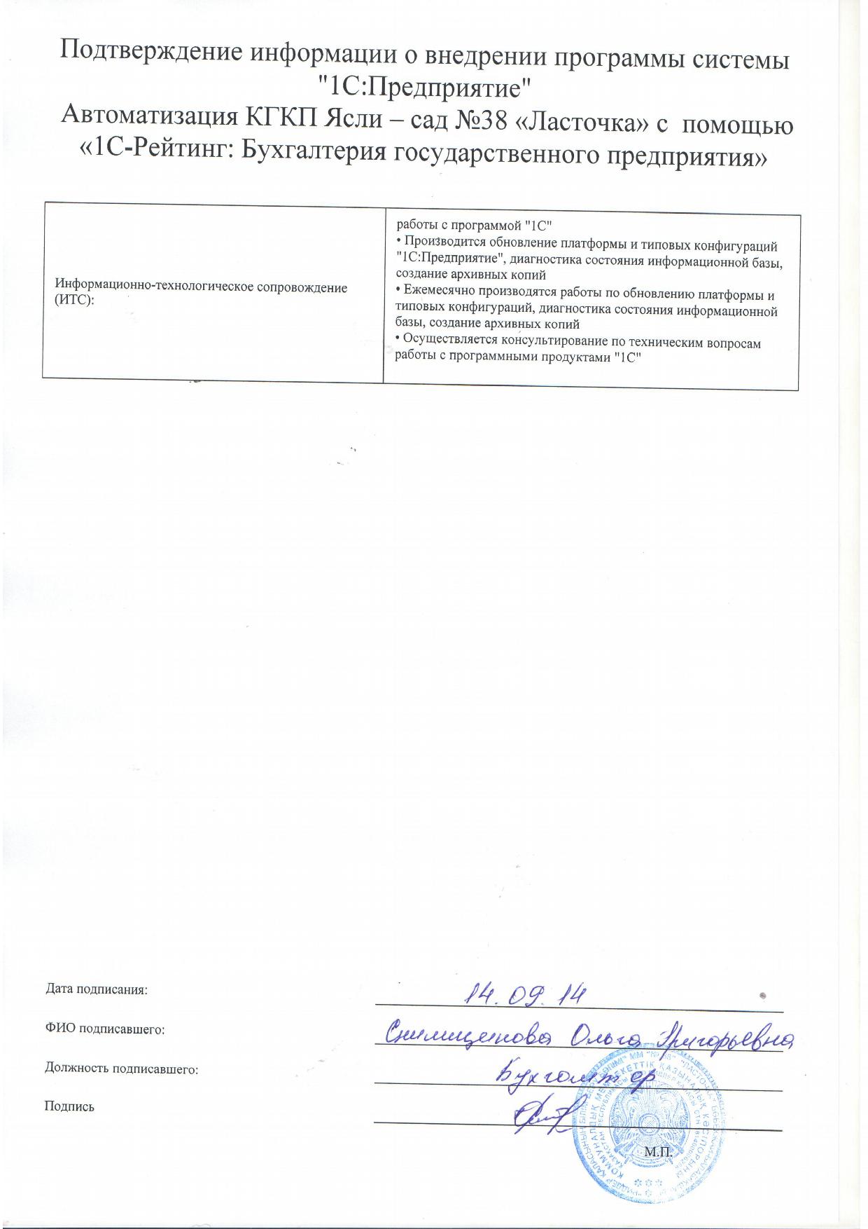 - Оформлен платный договор 1С:ИТС