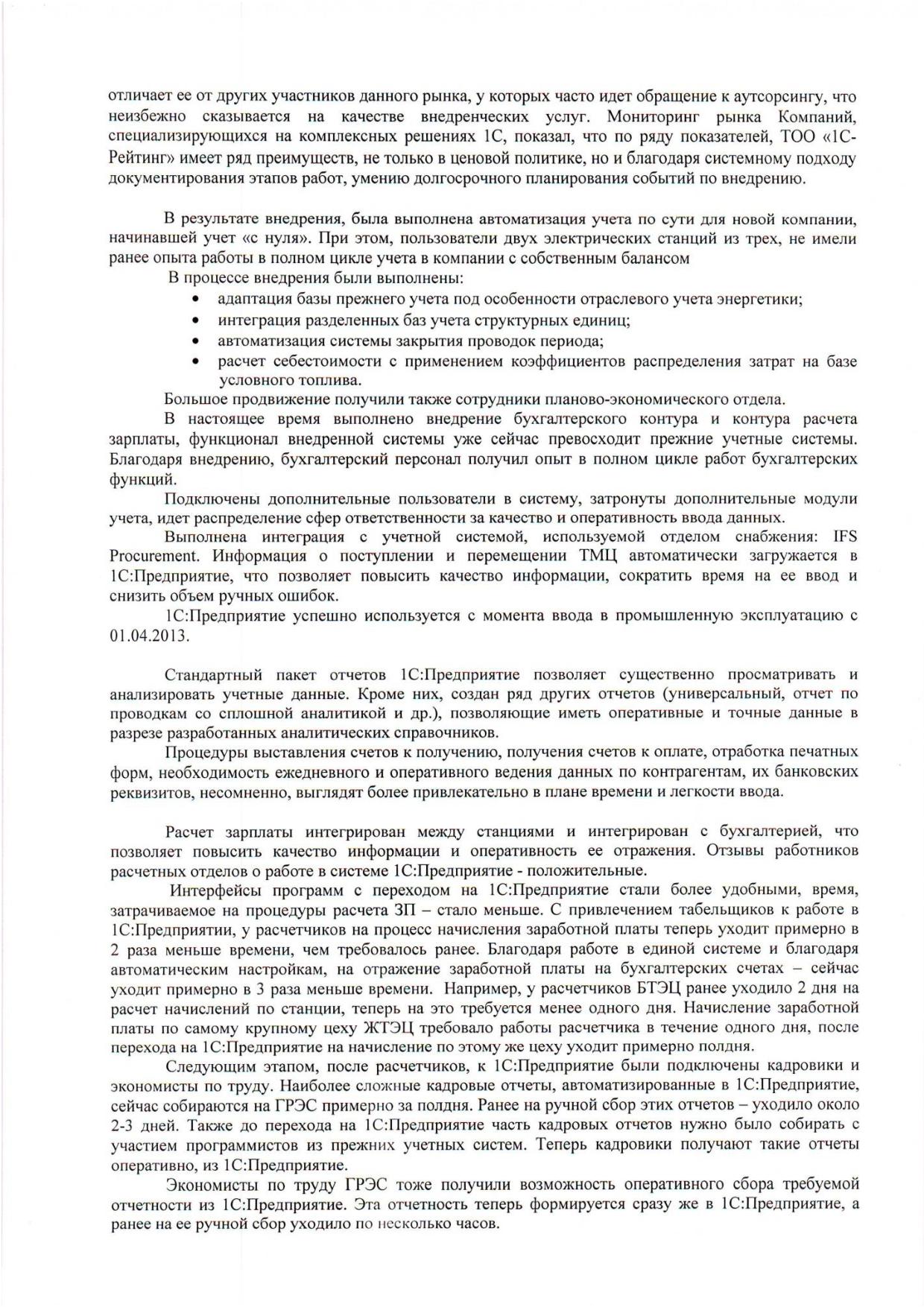 В результате внедрения, была выполнена автоматизация учета по сути для новой компании, начинавшей учет «с нуля». При этом, пользователи двух электрических станций из трех, не имели ранее опыта работы в полном цикле учета в компании с собственным балансом.