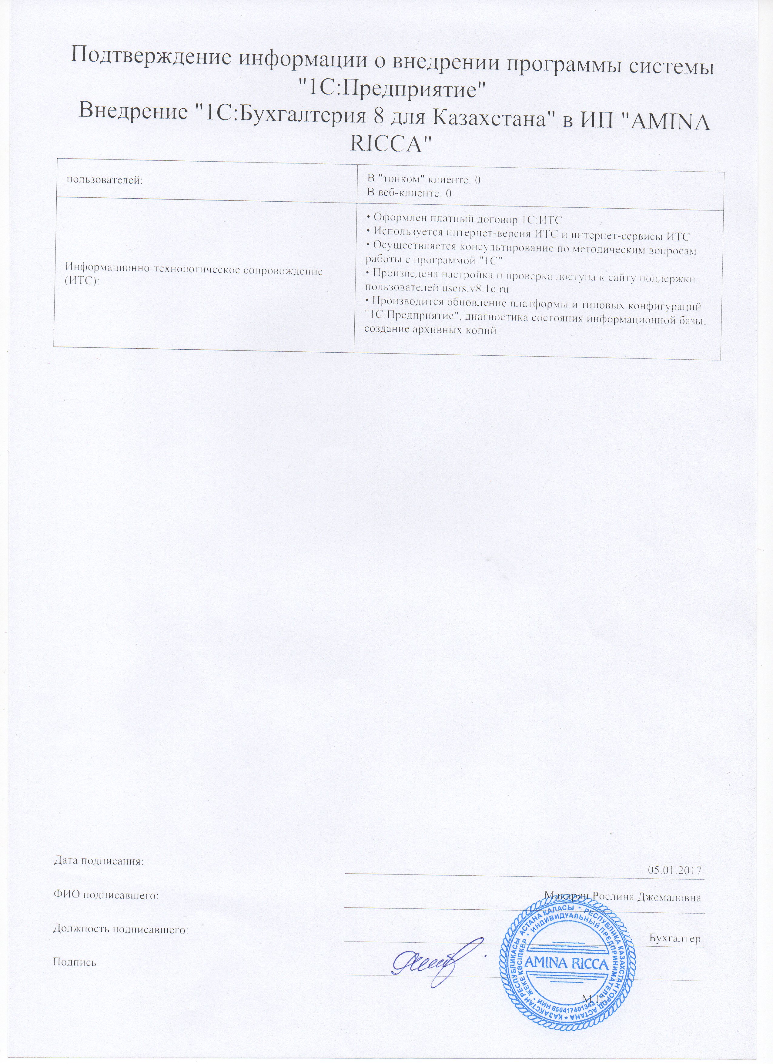 - Оформлен платный договор 1С:ИТС