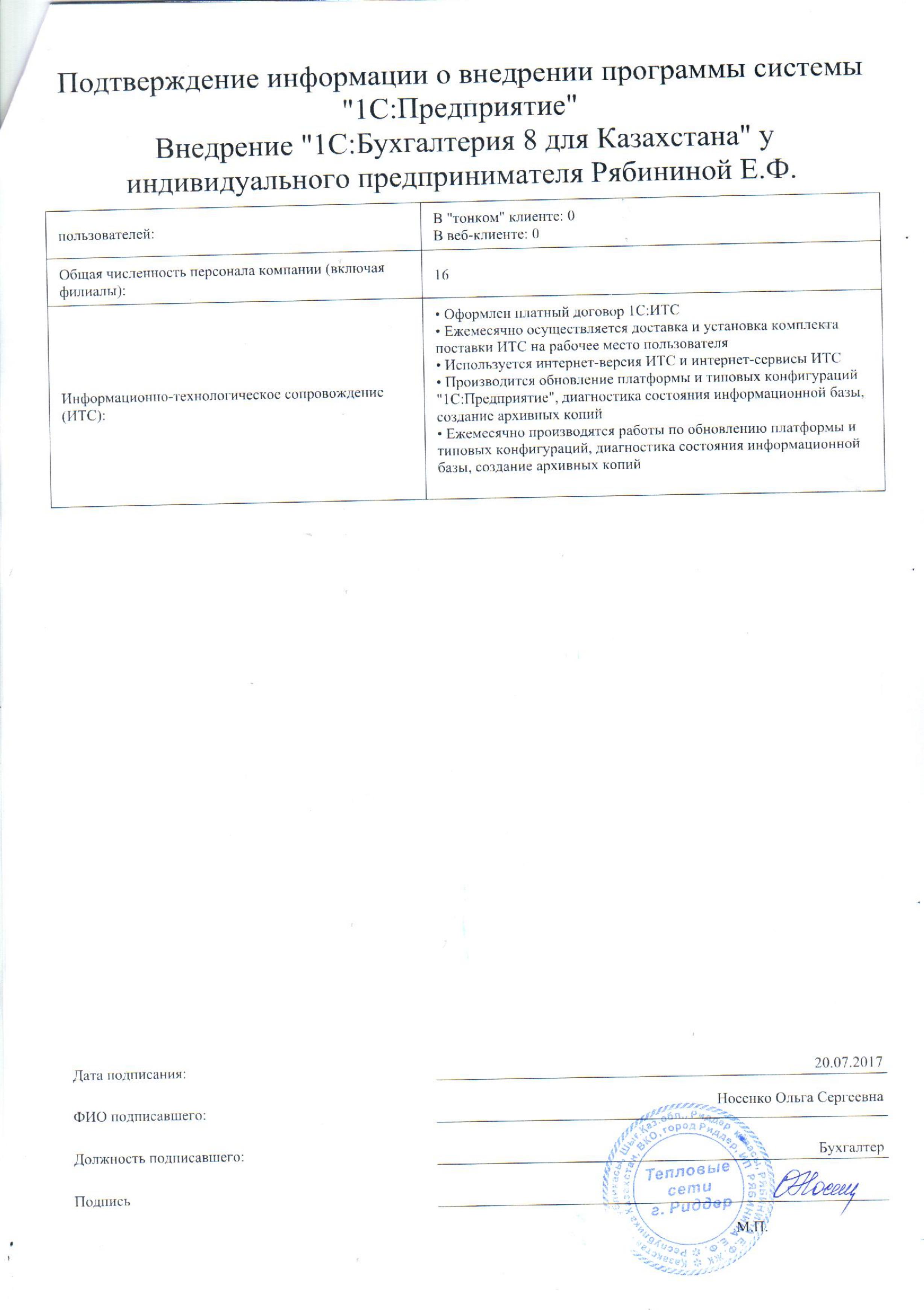 - Ежемесячно производятся работы по обновлению платформы и типовых конфигураций, диагностика состояния информационнойбазы, создание архивных копий