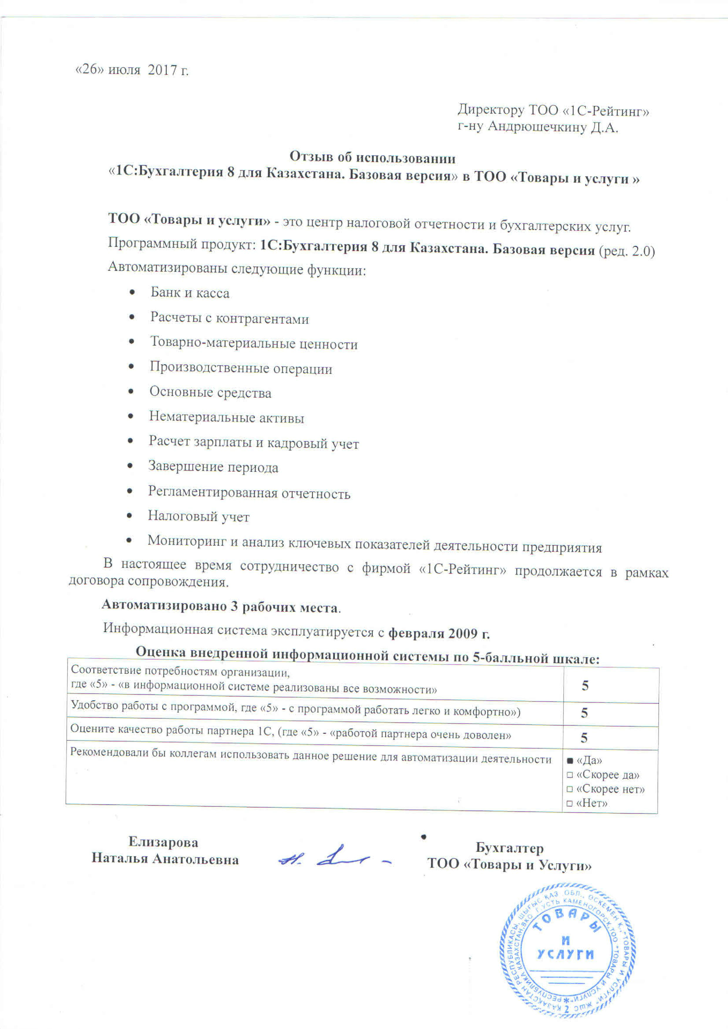 ТОО «Товары и Услуги»