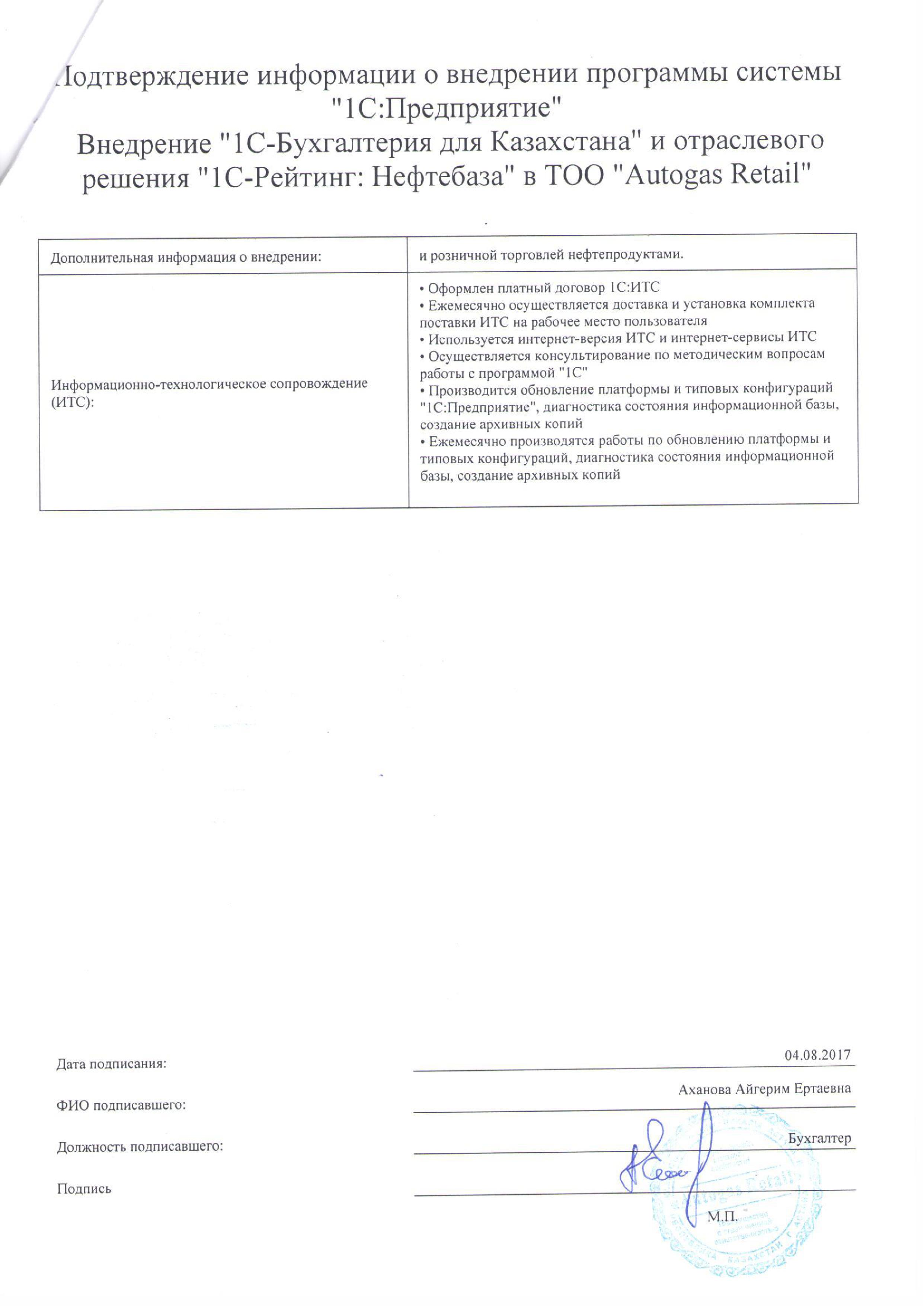 | Внедренное типовое решение: | 1С-Рейтинг: Нефтебаза |