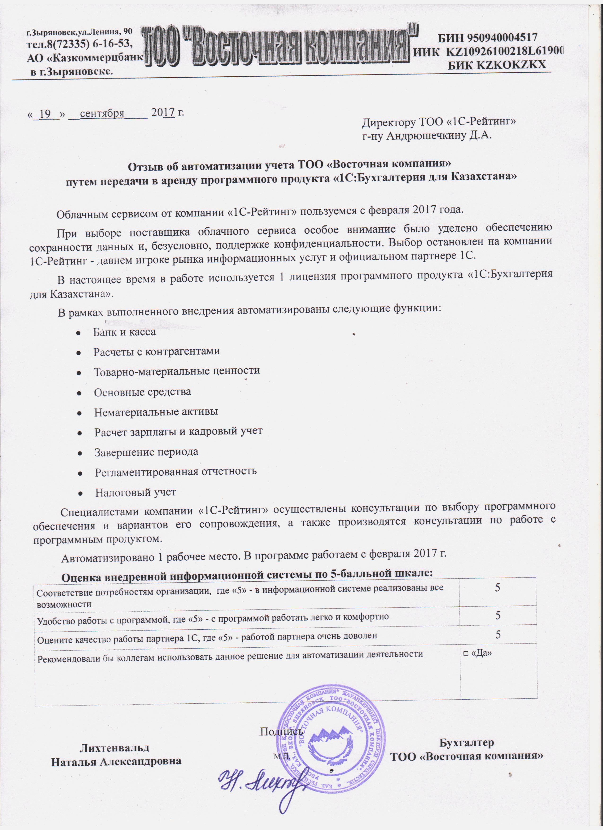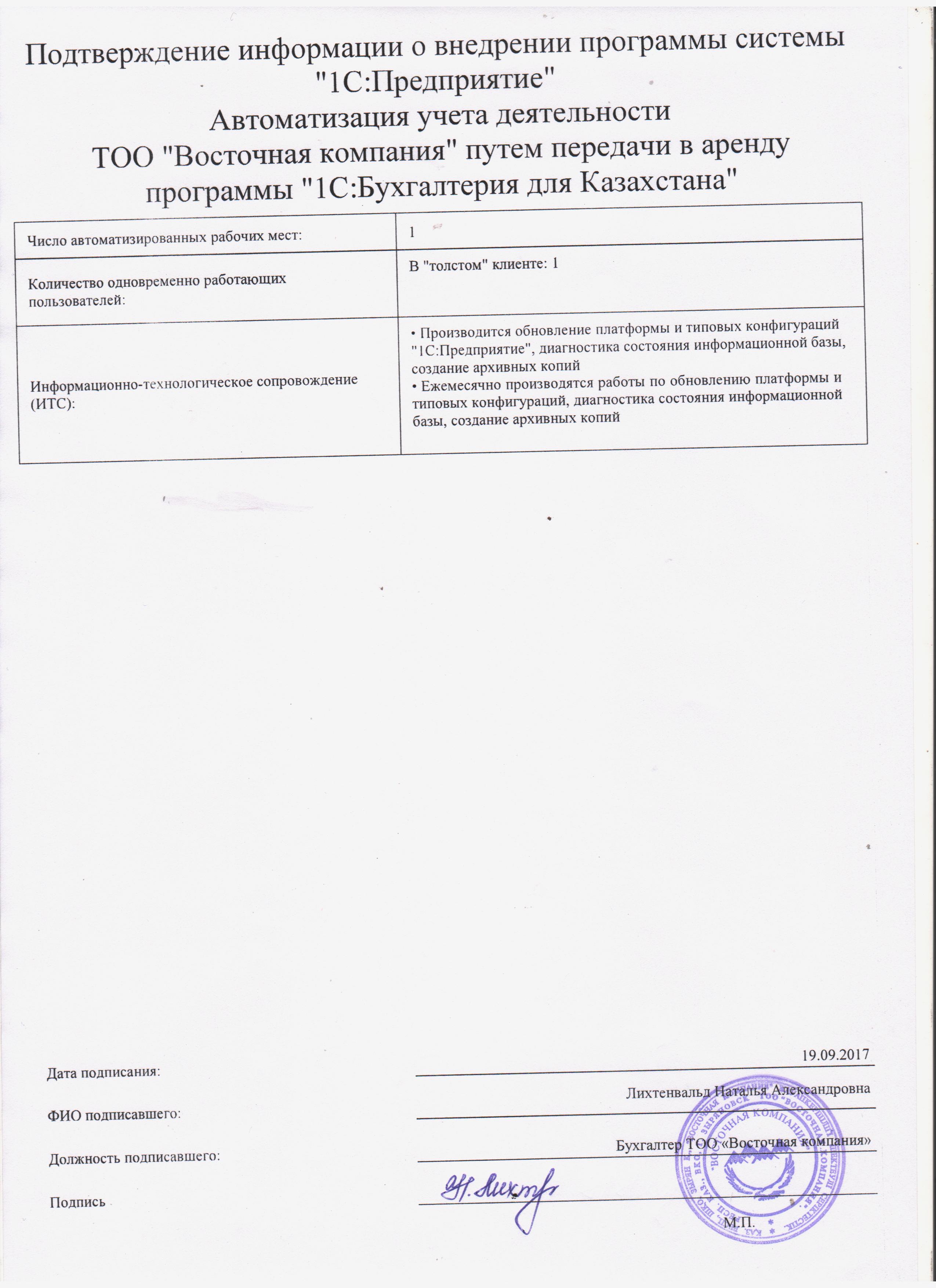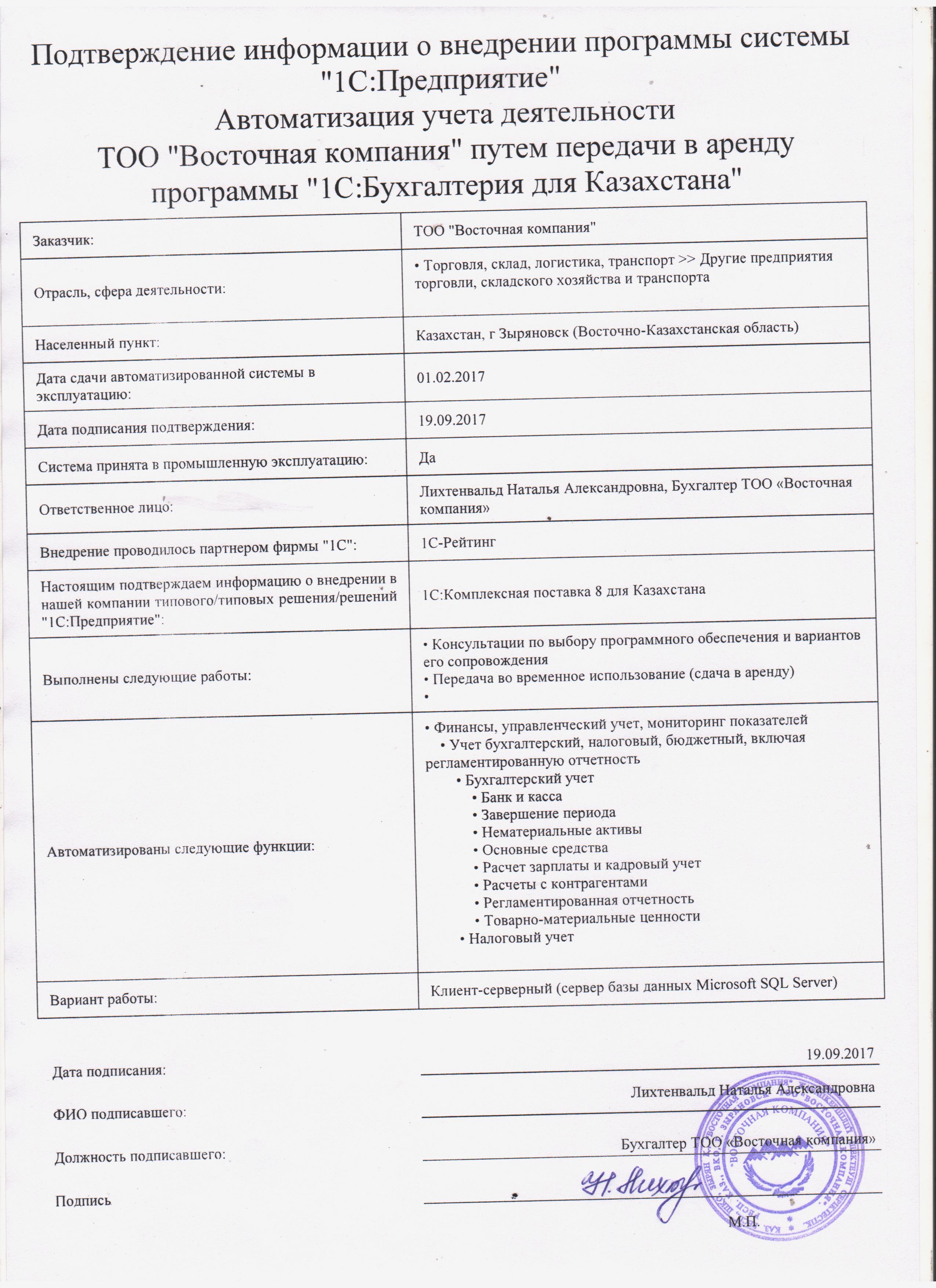 | Арендованное типовое решение: | 1С:Бухгалтерия для Казахстана |
