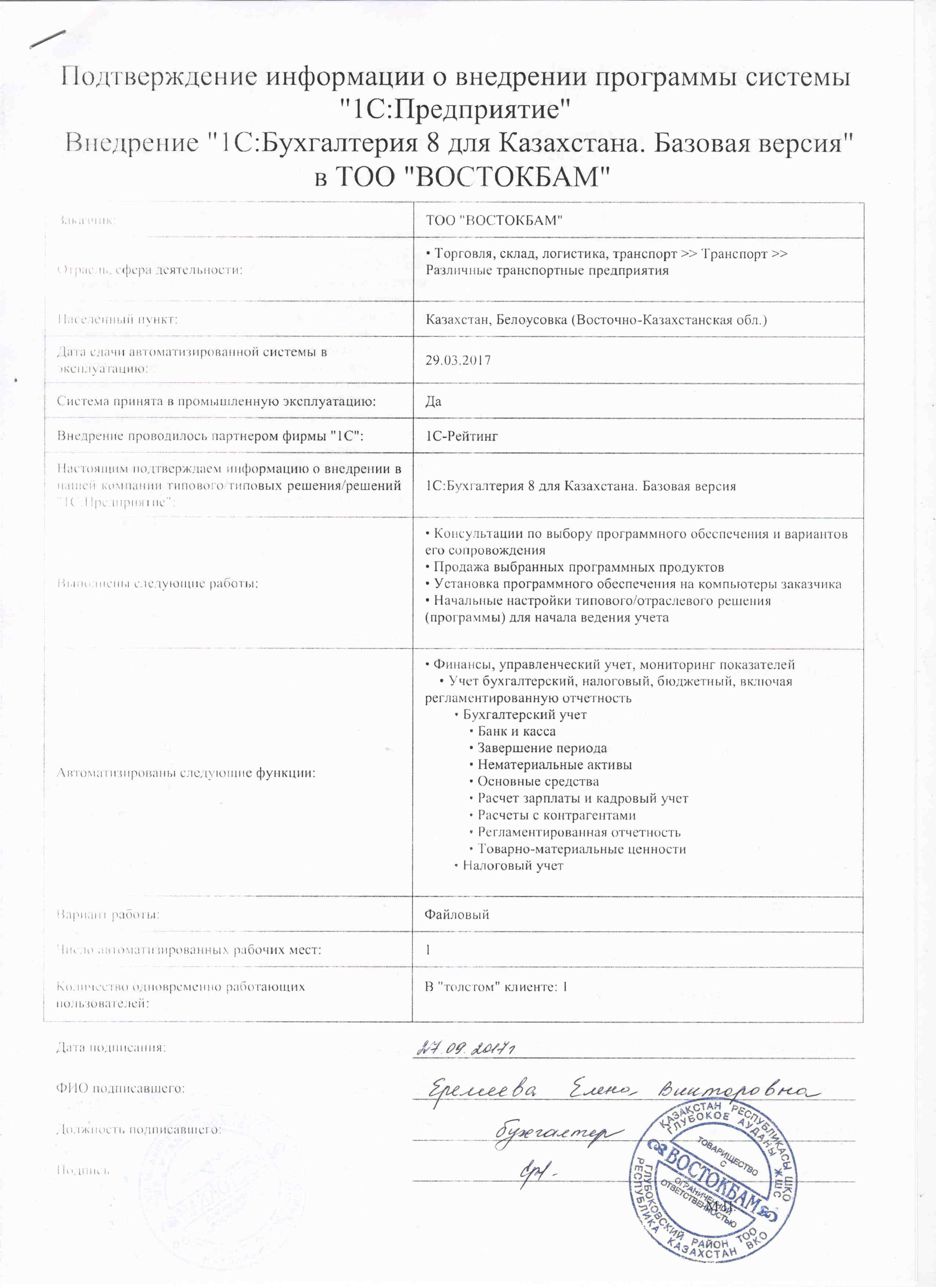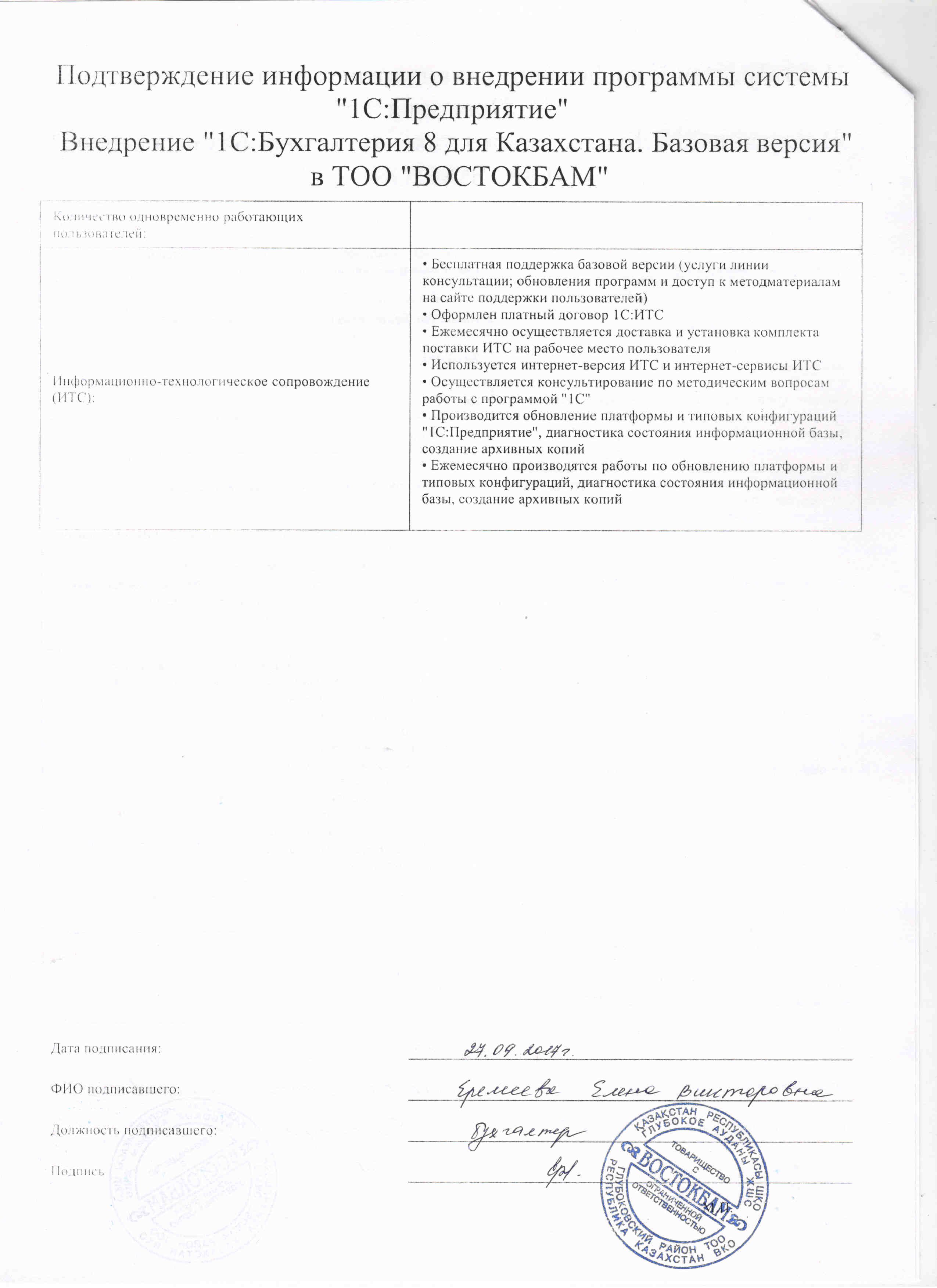 | Внедренное типовое решение: | 1С:Бухгалтерия для Казахстана. Базовая версия |