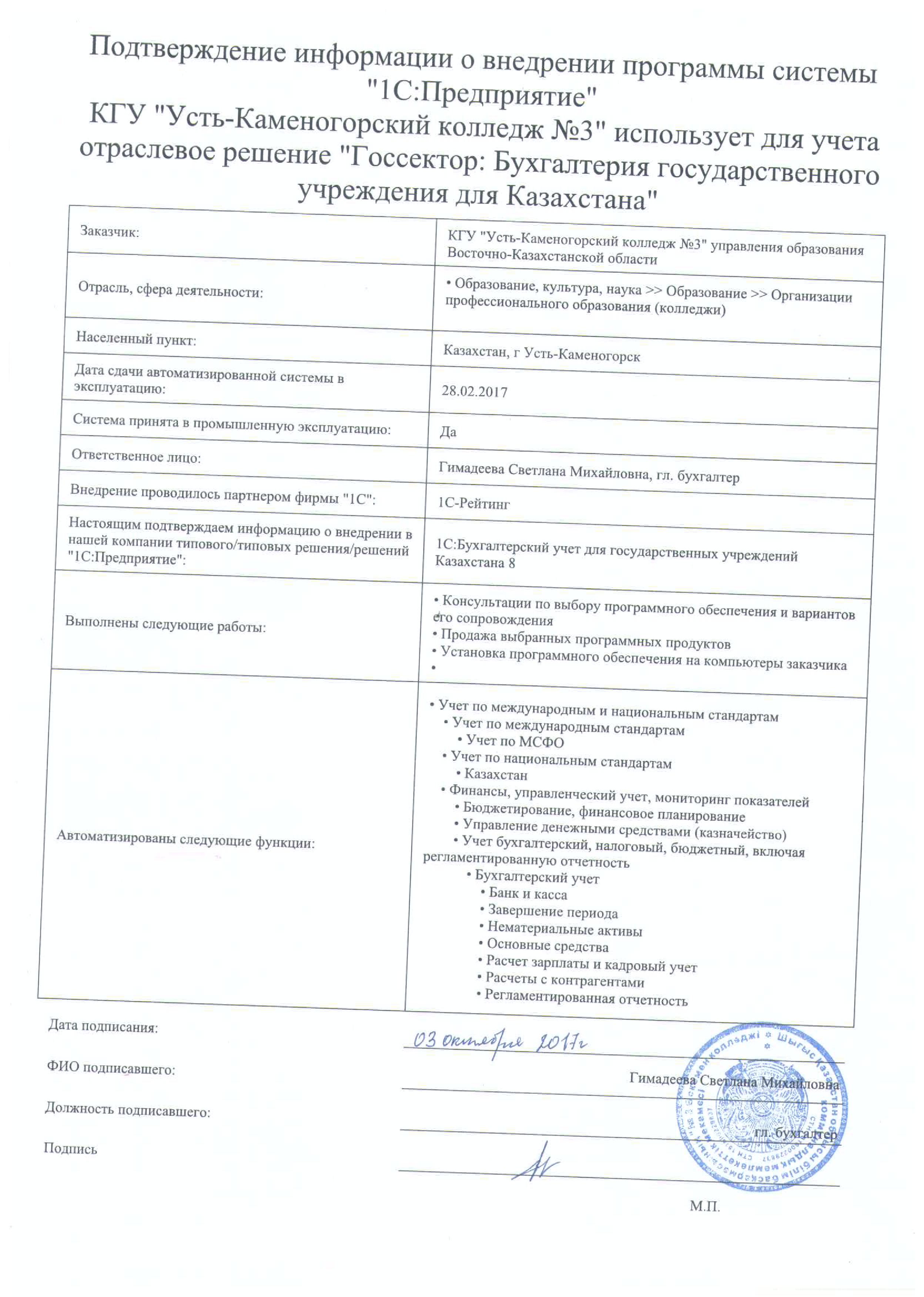 | Внедренное отраслевое решение: | Госсектор: Бухгалтерия государственного учреждения для Казахстана |