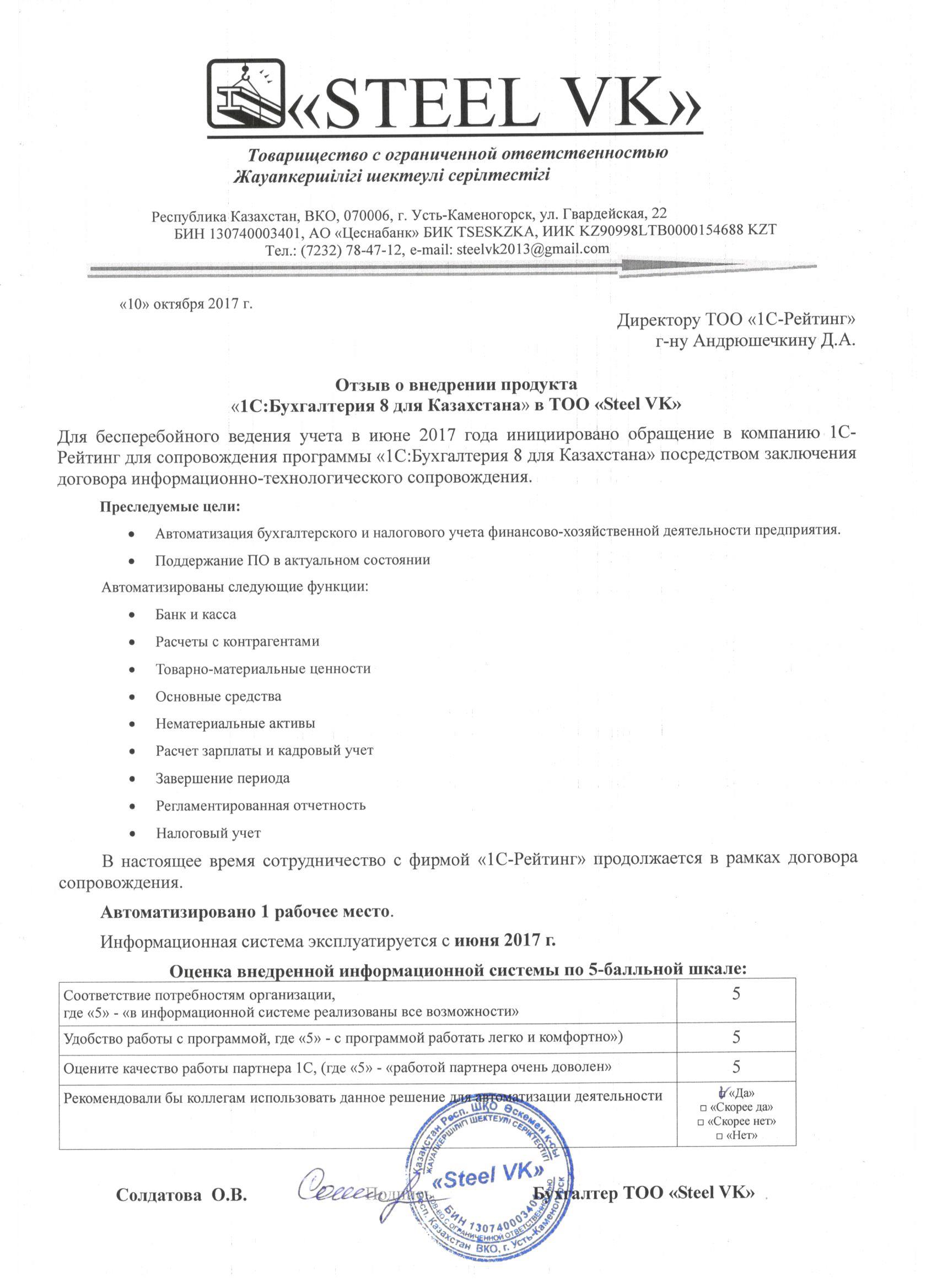 | Внедренное типовое решение: | 1С:Бухгалтерия 8 для Казахстана |