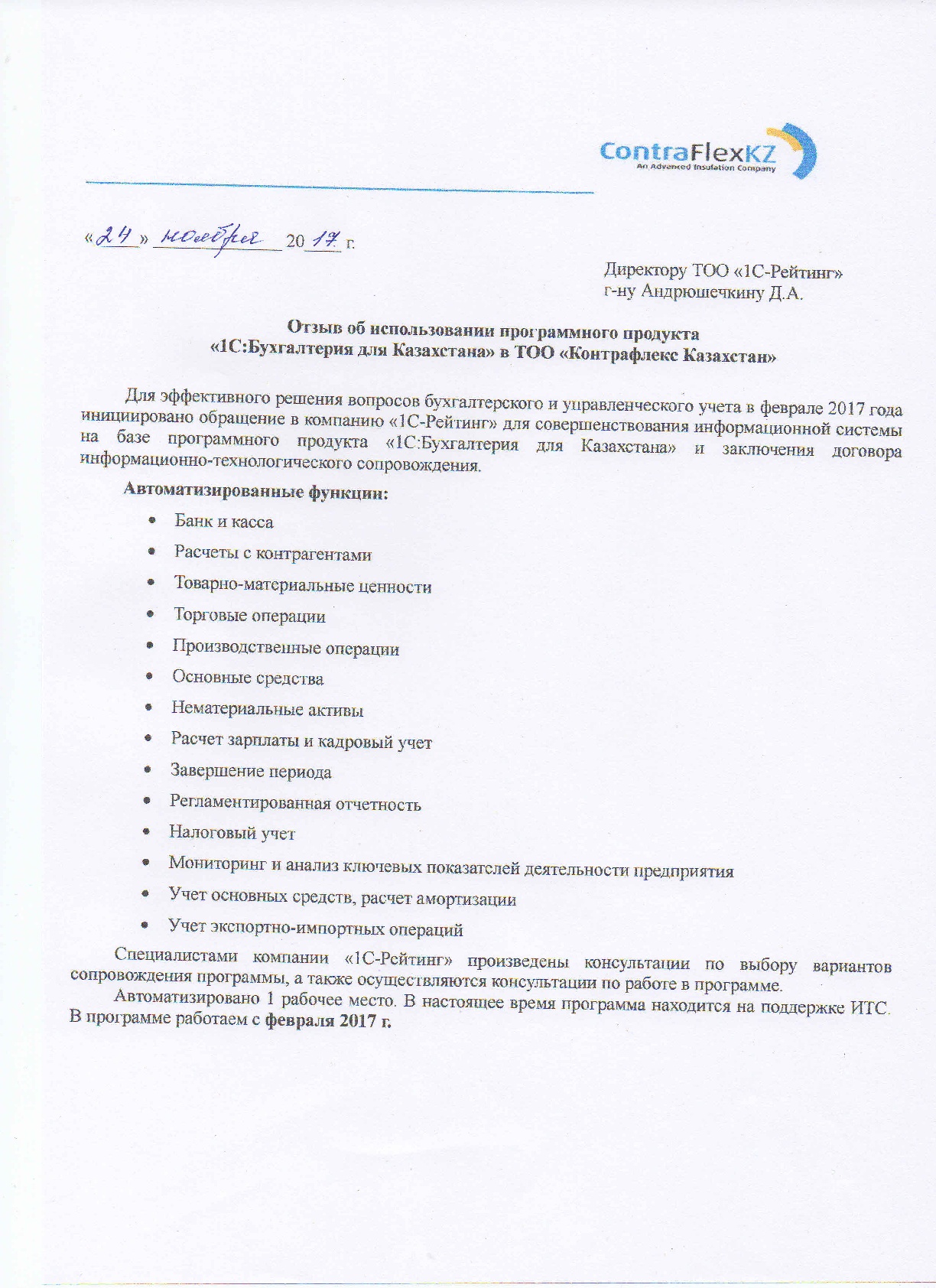 | Внедренное типовое решение: | 1С:Бухгалтерия 8 для Казахстана |
