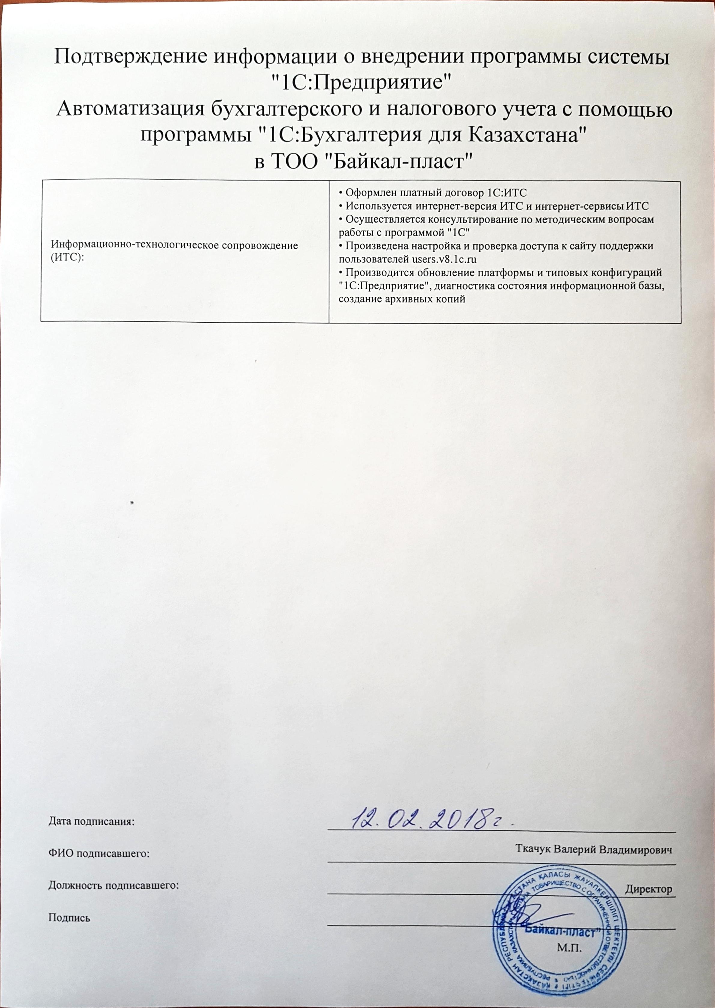 - Произведена настройка и проверка доступа к сайту поддержки пользователей users.v8.1c.ru