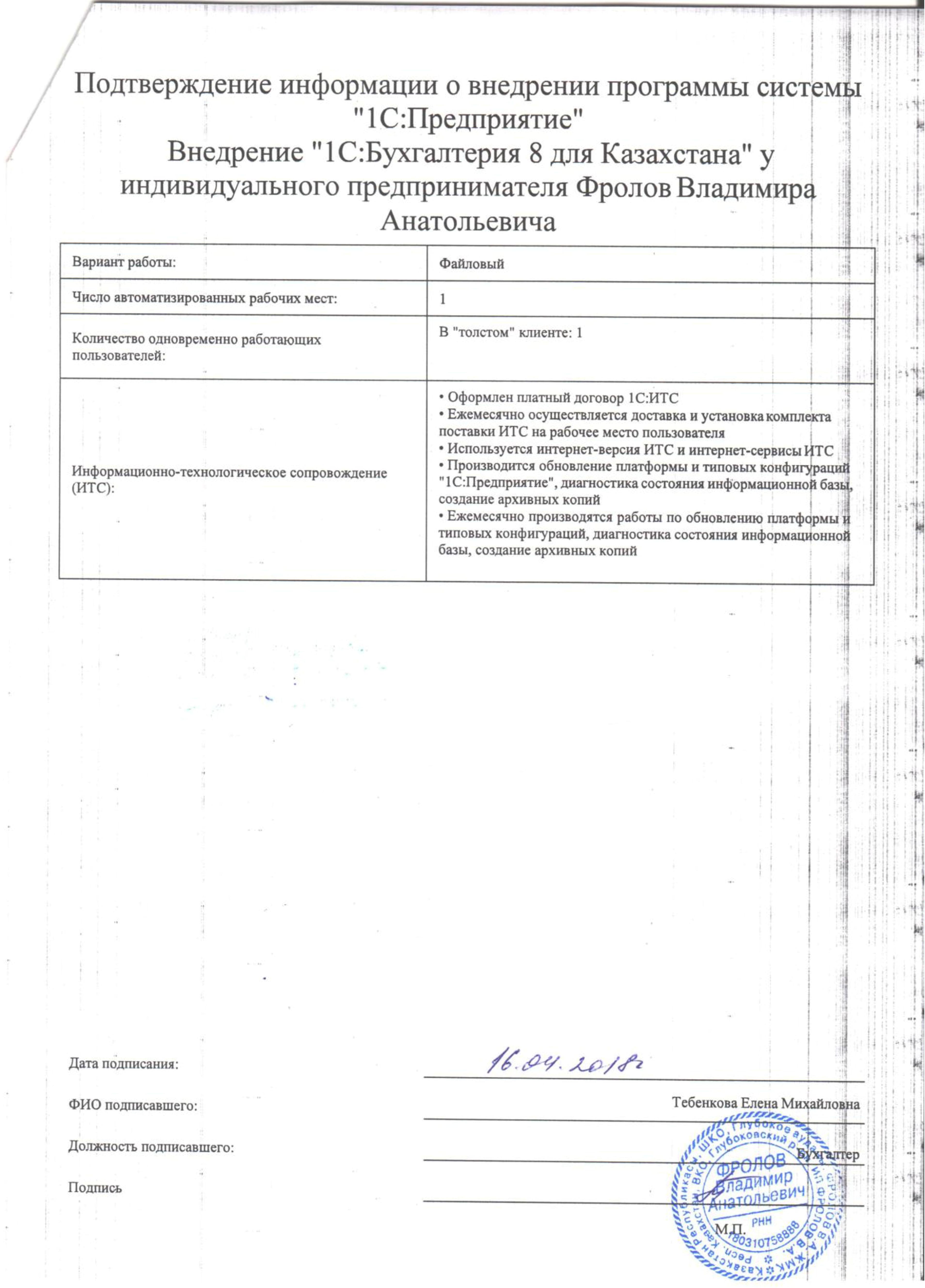 - Оформлен платный договор 1С:ИТС