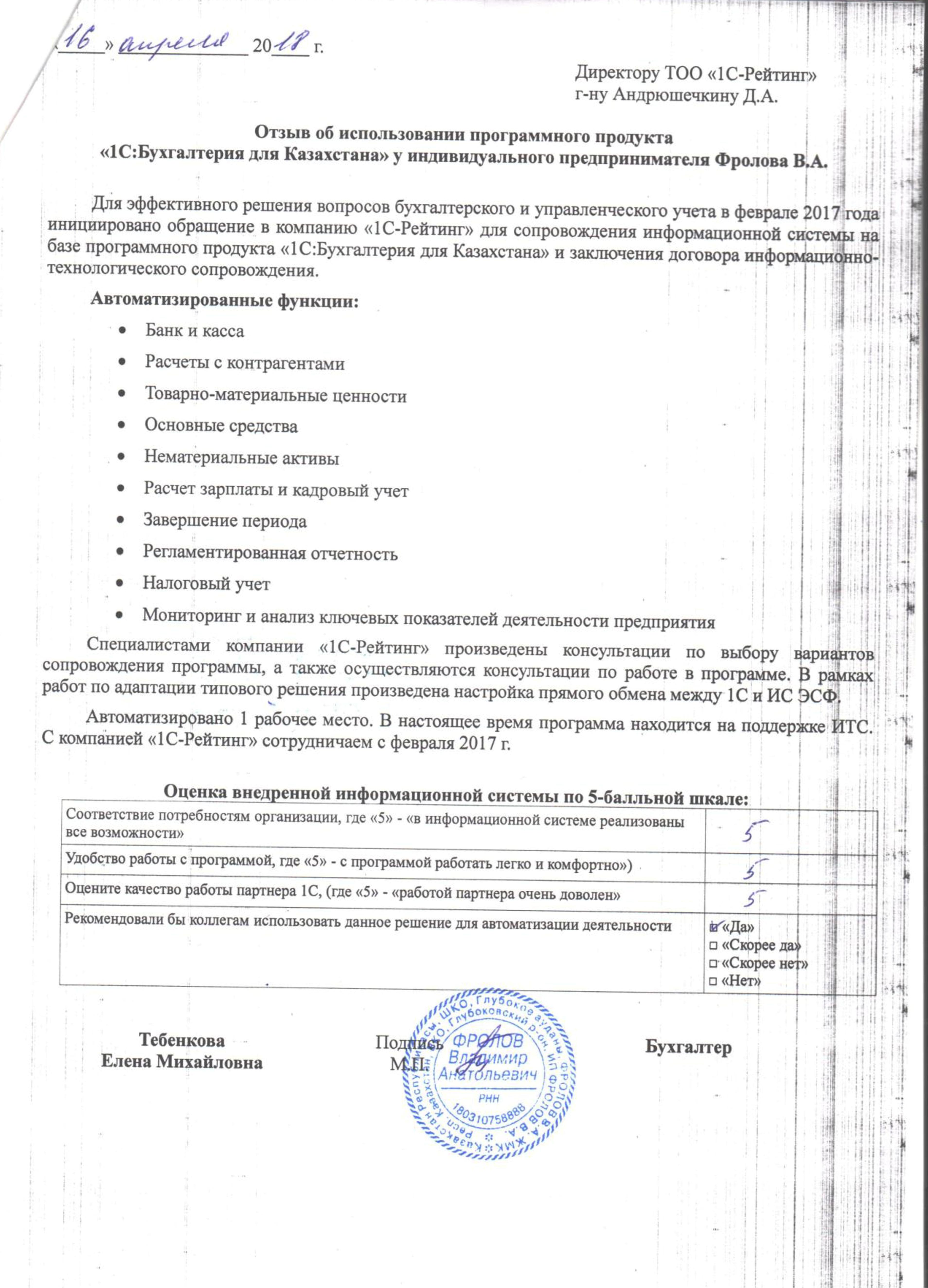 | Внедренное типовое решение: | 1С:Бухгалтерия 8 для Казахстана |