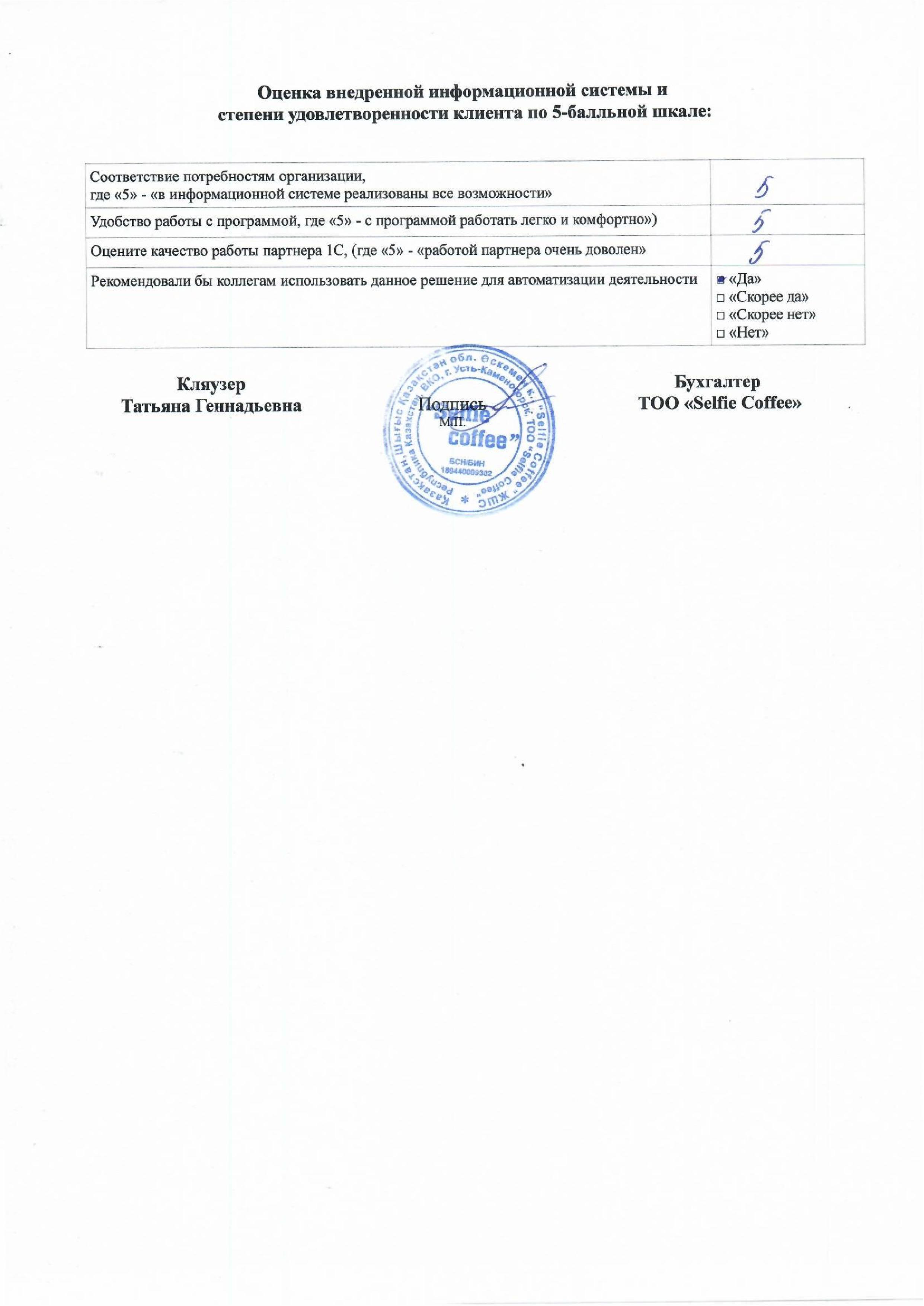 | Внедренное отраслевое решение: | 1С-Рейтинг: Общепит для Казахстана |