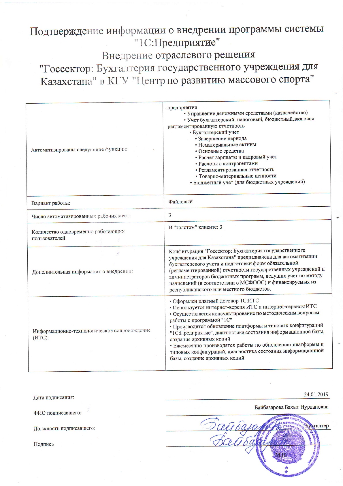 - Оформлен платный договор 1С:ИТС