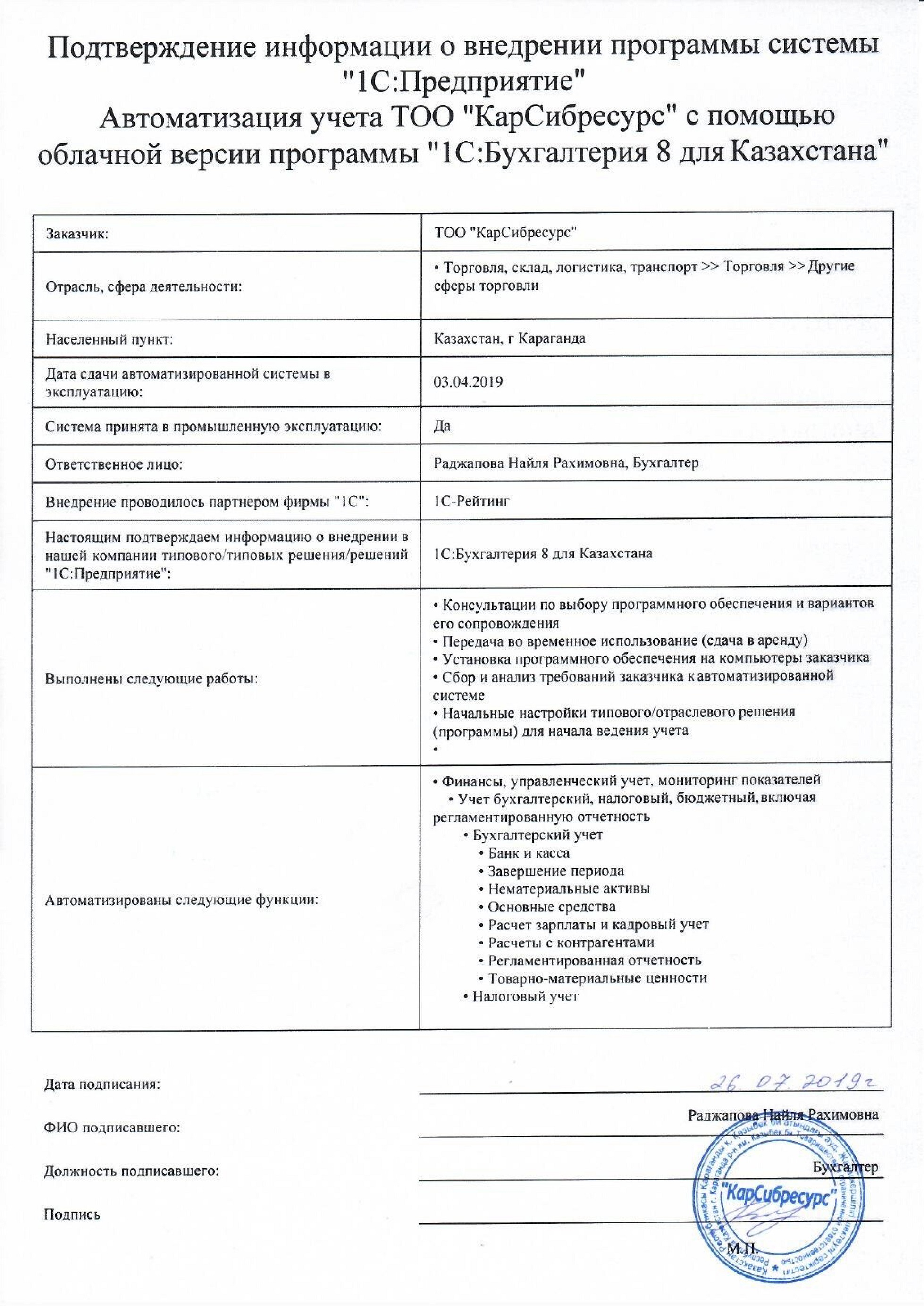 | Арендованное типовое решение: | 1С:Бухгалтерия для Казахстана |