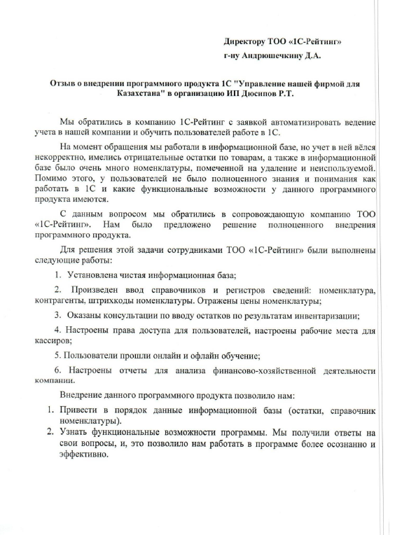 Внедрение программного продукта «1С:Управление нашей фирмой для Казахстана».Выполнены следующие работы: