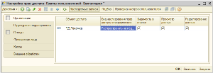 Настройка непосредственно прав доступа к отдельным элементам производится из справочника «Группы пользователей» при помощи обработки настройки прав доступа.