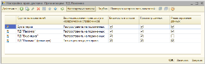 Работа в данном окне аналогична описанию работы с обработкой настройки прав на шаге 5, за исключением того, что вместо колонки «Объект доступа» отображается колонка «Группа пользователей», где указывается группа пользователей, для которой производится настройка. Если значение в данной колонке не заполнить, то автоматически отобразится значение «Все группы пользователей» и настройка будет действовать для всех групп пользователей.