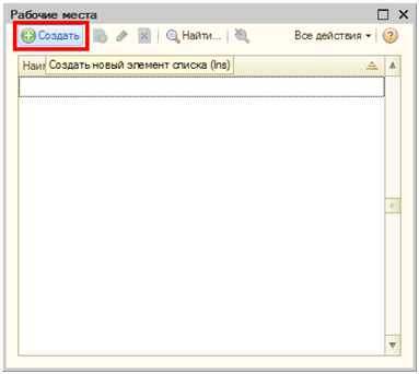 В открывшейся форме «Рабочие места» необходимо добавить новое рабочее место.
