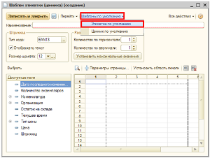 В открывшемся окне редактирования шаблона этикетки для быстрого создания макета этикетки можно воспользоваться шаблоном этикетки заданным по умолчанию. Для этого необходимо выбрать команду «Шаблоны по умолчанию» — «Этикетка по умолчанию» и согласиться с тем, что редактируемый шаблон будет заменен.