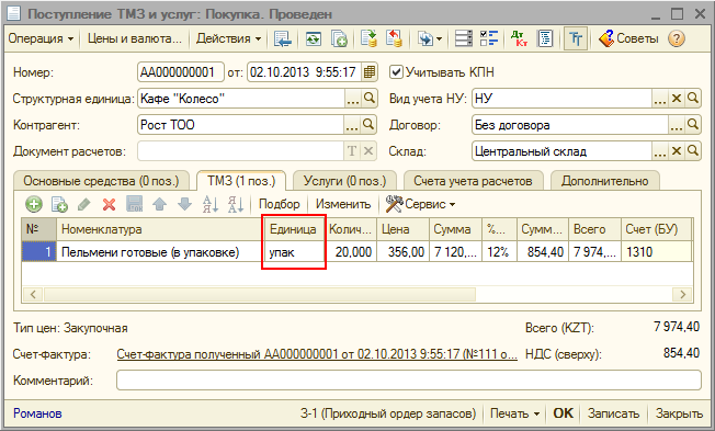 На предприятиях общественного питания при использовании готовых полуфабрикатов для приготовления блюд очень часто возникает вопрос о том, каким образом списать часть израсходованного полуфабриката, если его приобретение было оформлено в одной единице измерения, а выпуск блюда происходит в другой единице измерения. Например, приобретение полуфабриката осуществляется в упаковках, а выпуск продукции из данного полуфабриката осуществляется в килограммах, при этом списание полуфабриката должно производиться в той же единице измерения, в которой он был оприходован на склад. Возможность такого списания предусмотрена в прикладном решении «1С-Рейтинг: Общепит для Казахстана».