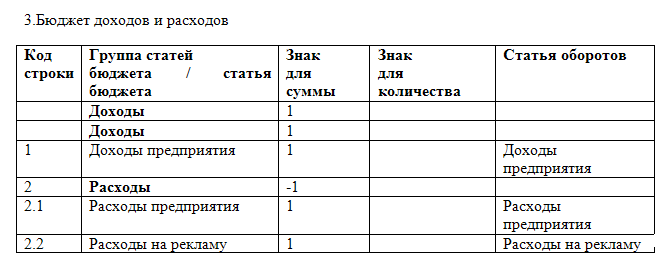 Для определения статей бюджета в информационной базе конфигурации представим их в следующих таблицах: