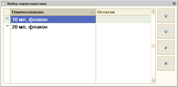 Если учет номенклатуры ведется в разрезе характеристик, серий и цен, то при выборе номенклатуры последовательно откроются формы выбора характеристики, серии и цены номенклатуры.