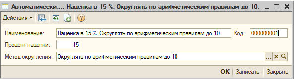 Если в системе будет использоваться механизм автоматических наценок, то предварительно должен быть заполнен справочник «Методы округления», который содержит варианты методов округления цен номенклатуры (меню «Справочники» → «Ценообразование»).
